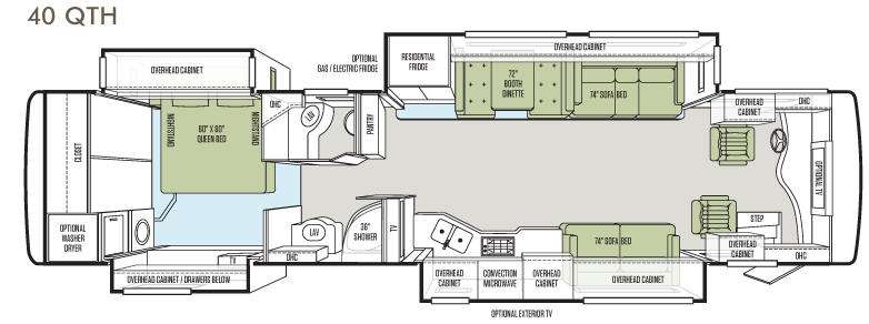 Quad Slide Phaeton Class A Diesel w/Rear Queen Bed Slide w/Nightstands & Overhead Cabinet, Closet, 32" LCD TV w/Drawers Below Slide, 36" Shower, Lav., Private Toilet Area w/Lav., Pantry, Res. Refrig./Booth Dinette & 74" Sofa Bed Slide, 2nd 74" Sofa Bed/Range w/Convection Microwave/Double Kitchen Sink Slideout, 32" LCD TV Inside and More! Available Options May Include: Washer/Dryer, Free Standing Dinette, 32" LCD TV Above Cab & 32" Exterior TV, Gas/Elec. Refrigerator.