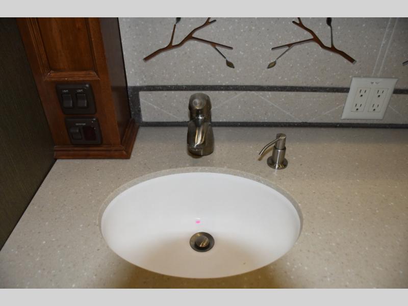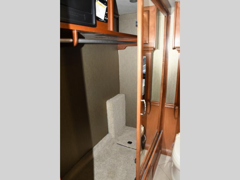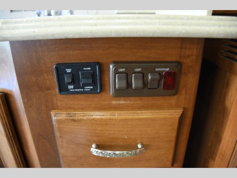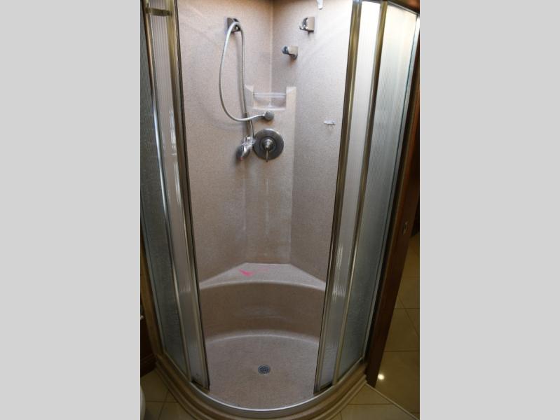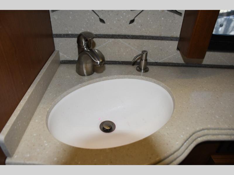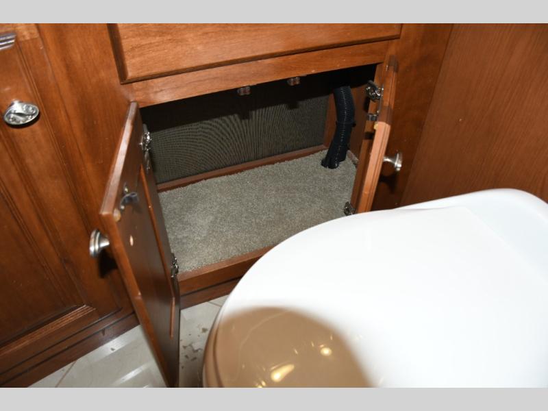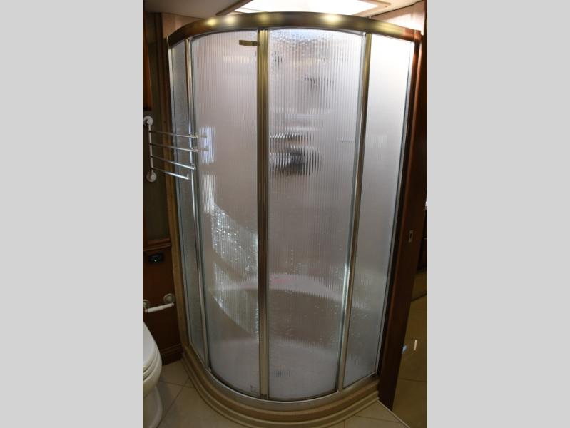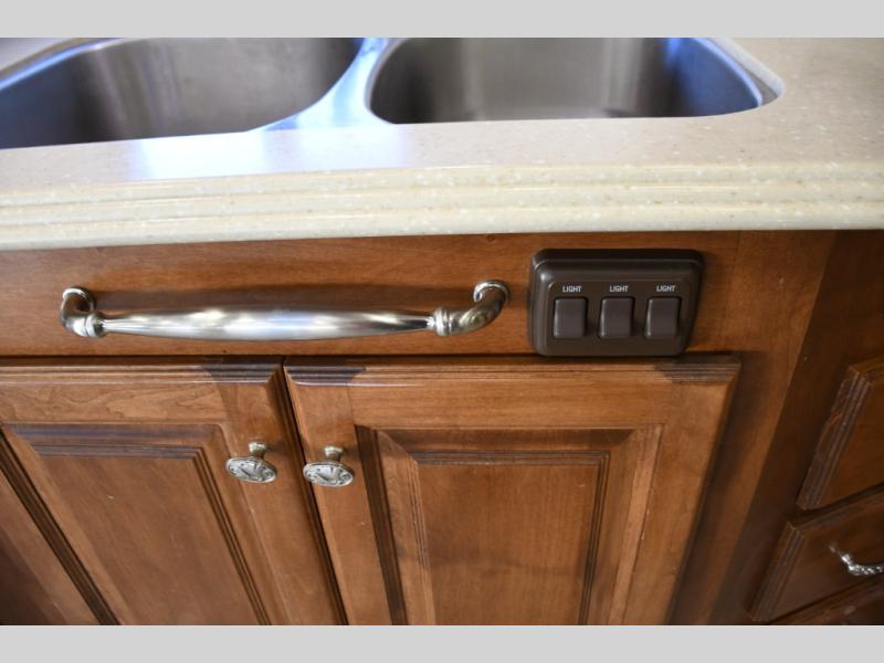 Inside, you’ll find a residential-style living area with ample seating, large panoramic windows, and well-appointed finishes that create a bright, inviting environment. The galley kitchen is equipped with quality appliances, generous counter space, and smart storage solutions for easy meal preparation on the road. The master suite offers privacy, a comfortable sleeping area, and abundant storage, while the bathroom provides full functionality with high-end fixtures and design.
