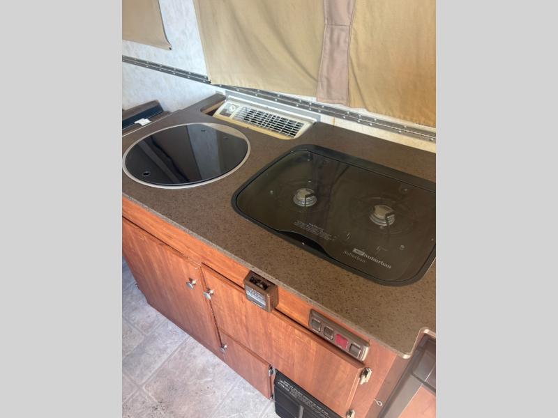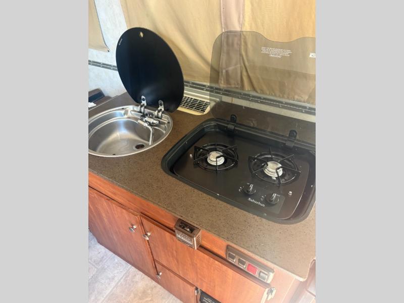 - Sleeping Capacity: 3-4 people.Interior Height (Floor to Peak): 99 inches.Closed Height: 66 inches.Water Capacity (Fresh): 11 gallons.