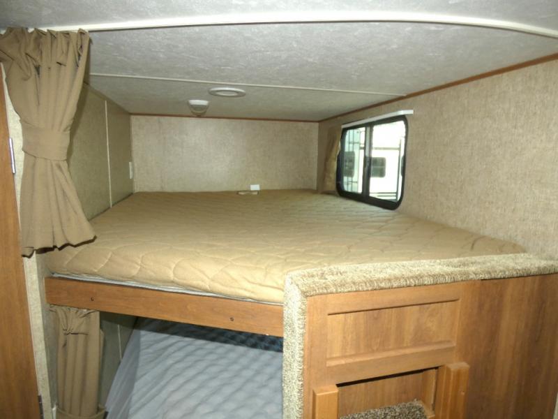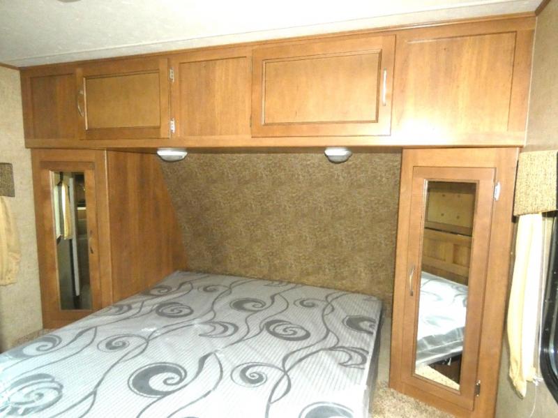 There is also plenty of storage featured throughout the unit with overhead cabinets and wardrobes inside, plus the large pass-thru compartment up front has space for all of your extra gear and much more!