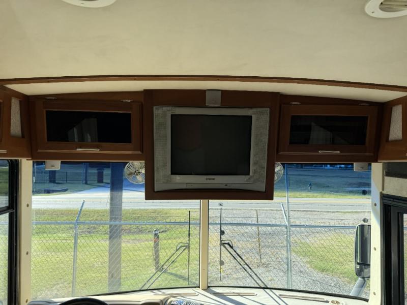 There is a 57" x 95" bunk over cab, and a swing arm TV overhead.