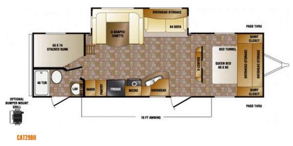 The Cruiser Aire CAT29BH travel trailer by CrossRoads RV offers a single slide and a rear bunk house.