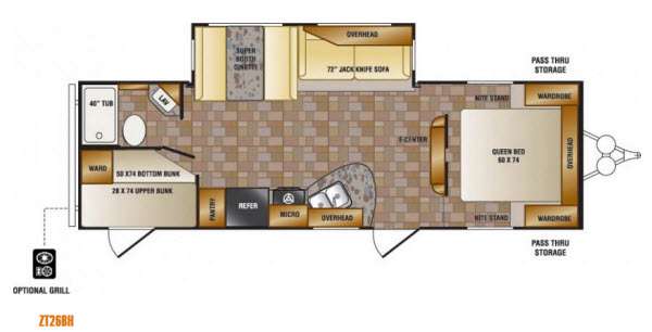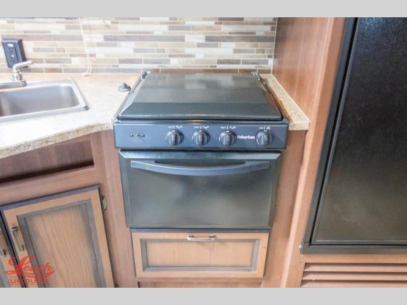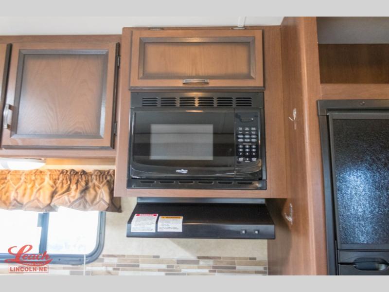 You will find plenty of overhead cabinets throughout the travel trailer as well as a large pass thru storage area. You can even choose an optional outside grill.