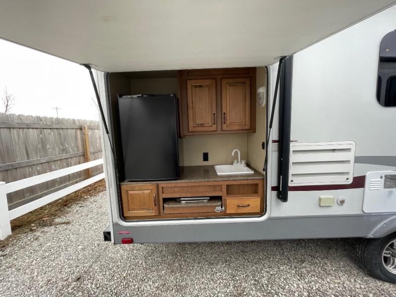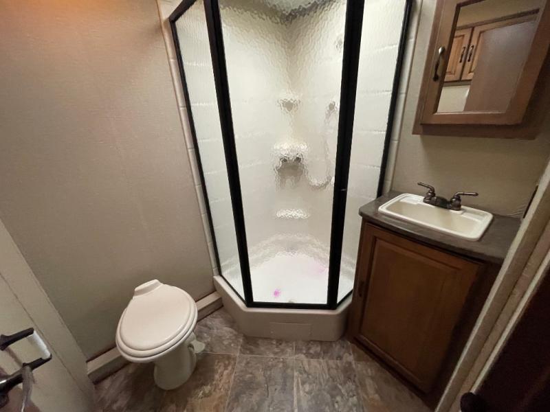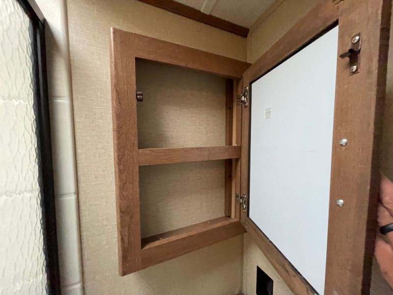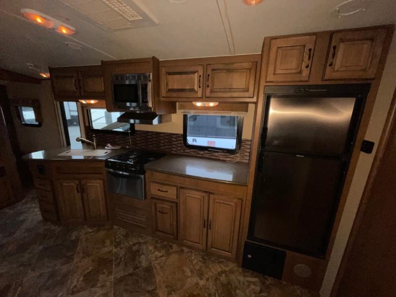 There is a convenient full pass-through storage compartment in front for all of your exterior camping gear and more. Plus, the outdoor kitchen is the perfect feature for those who enjoy cooking and eating outside. There is refrigerator, 2 burner cook top, and sink for easy cleanup, and so much more!