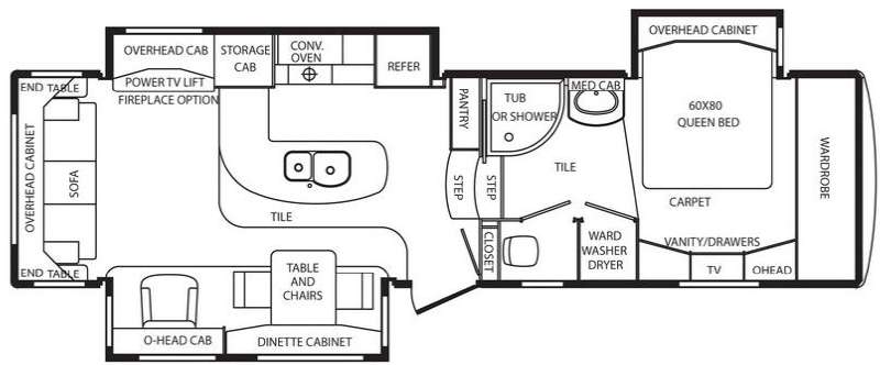 Mobile Suites FW by DRV Luxury Suites w/Rear Living Area w/Sofa & End Tables, Overhead Storage, Lounge Chair & Dinette w/Cabinet Slideout, Power Lift TV w/Overhead/Storage Cabinet/Conv. Oven & Refrigerator Slideout, Pantry, Entry Door Closet, Step Up to Bed & Bath w/Tub or Shower, Sink w/Med. Cabinet, Private Toilet Area, Washer/Dryer/Ward., Front Queen Bed Slide w/Overhead Storage, Ward., Vanity/Drawers w/TV & Storage Above & More! Avail. Options May Include: Fireplace.
