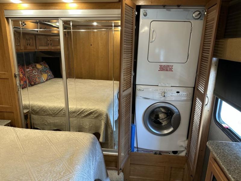 The bedroom features a king size bed slide, wardrobe, washer and dryer, and 32" LED tv.