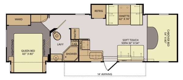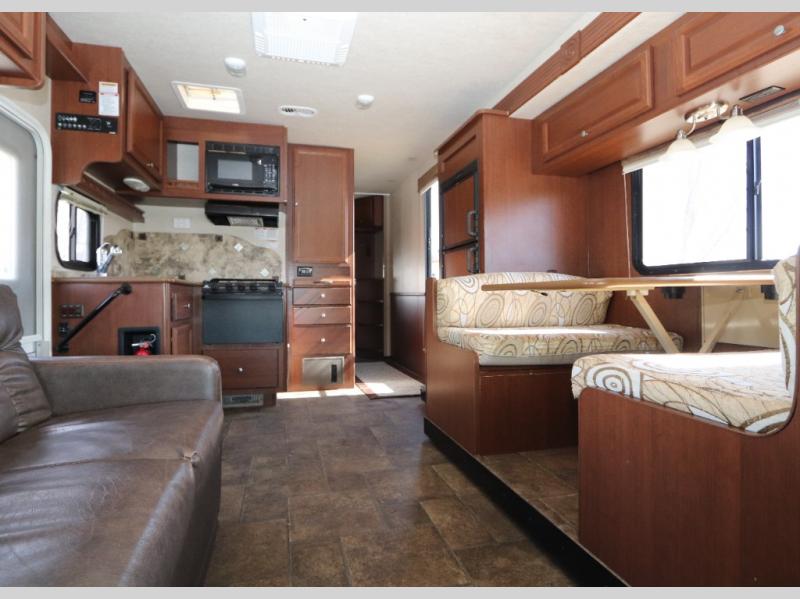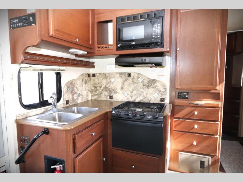 The cabover bunk offers additional sleeping space for friends. You can also choose a few optional items, such as a 19" LED tv, three burner range with oven, and a front 29" LED tv.