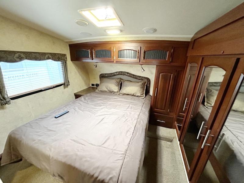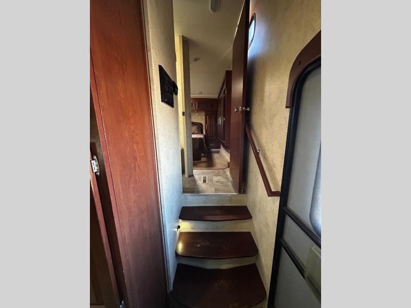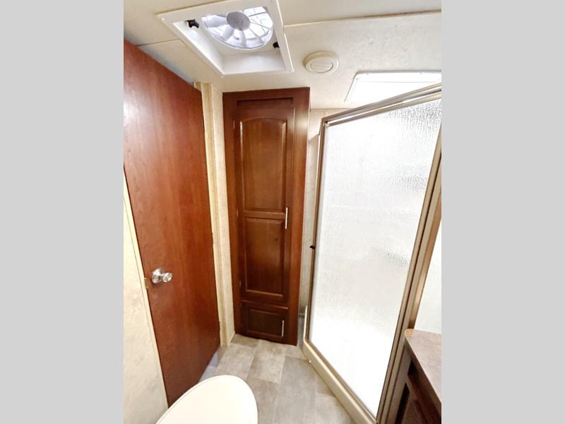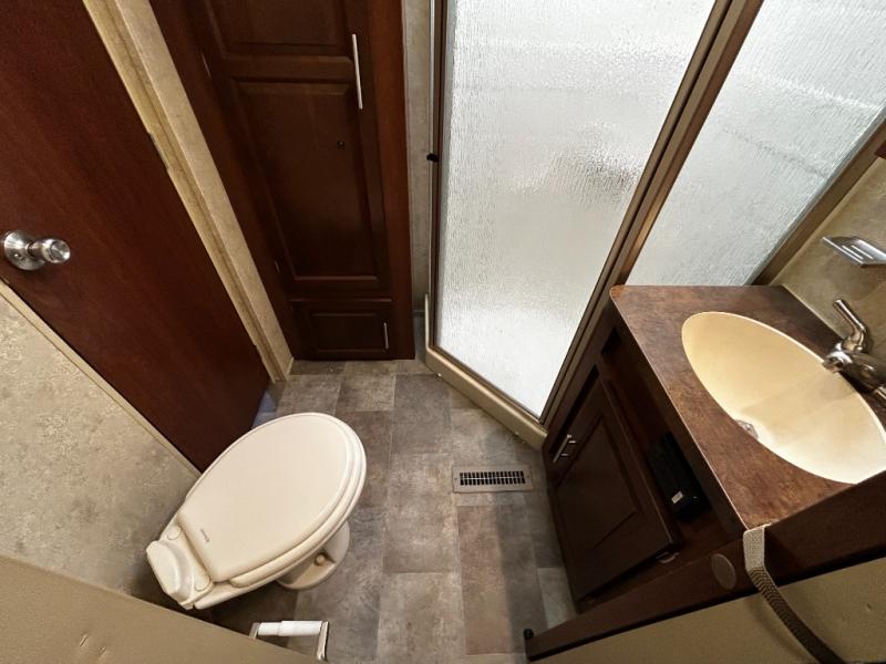 The overhead cabinets provide much interior storage and there is plenty of exterior storage with the pass thru storage area. You can even choose a few options, such as, theater seating in place of the lounge chairs, a gas grill, and a rear ladder.