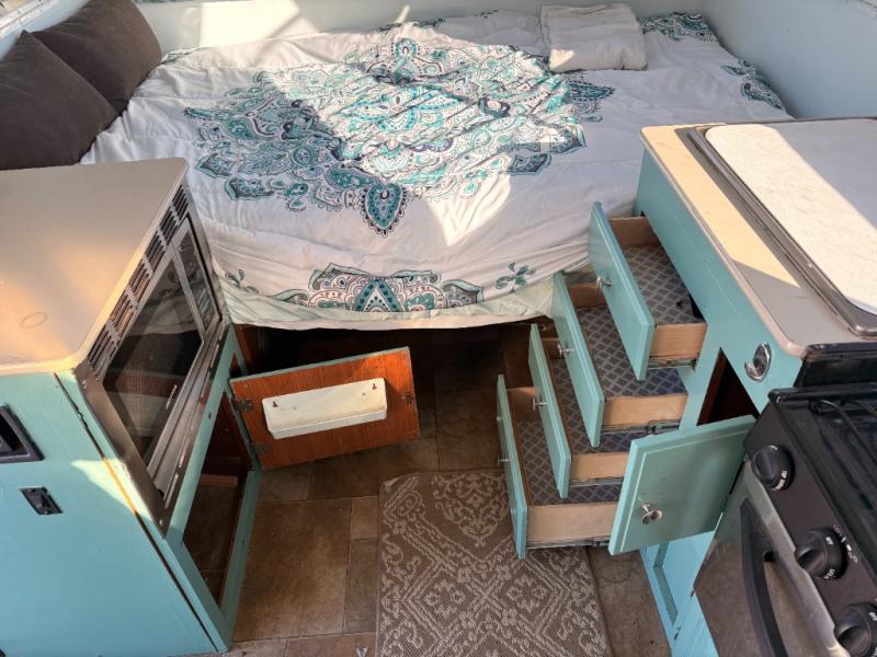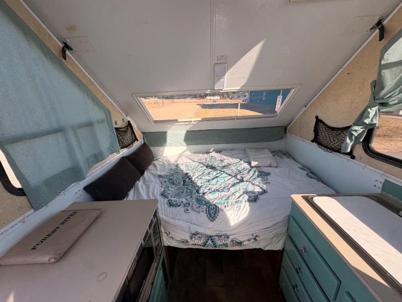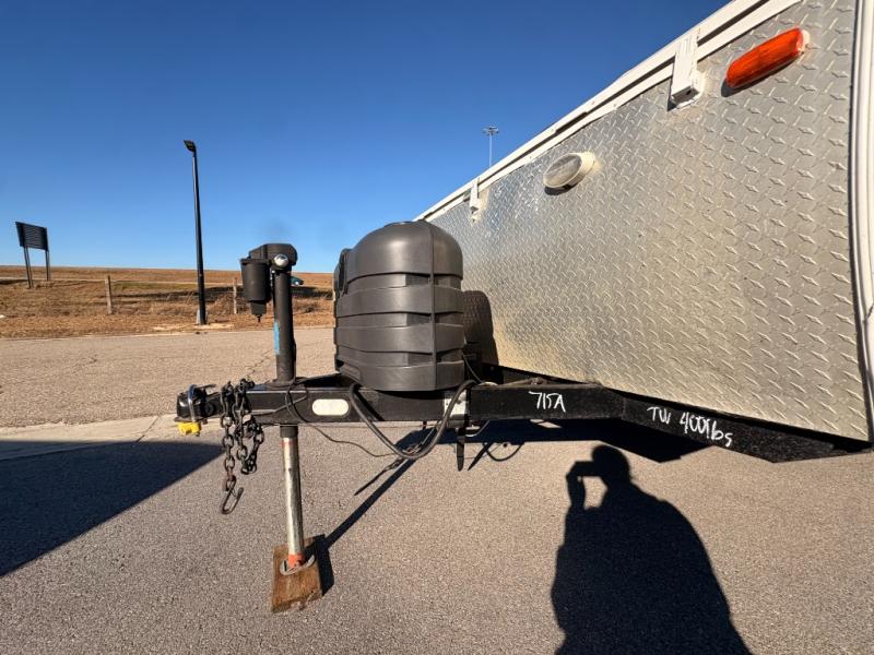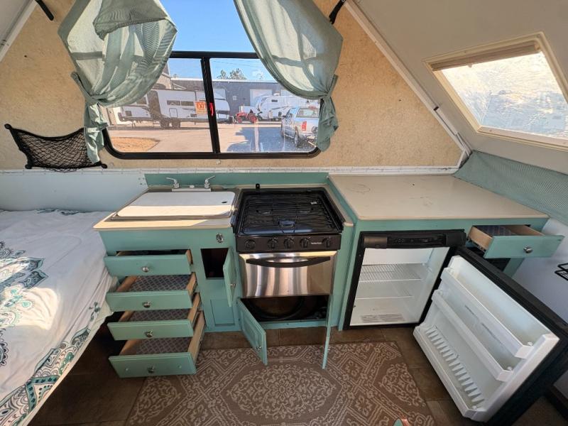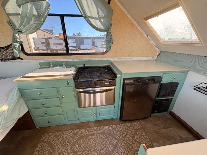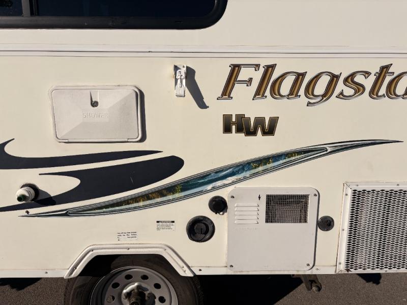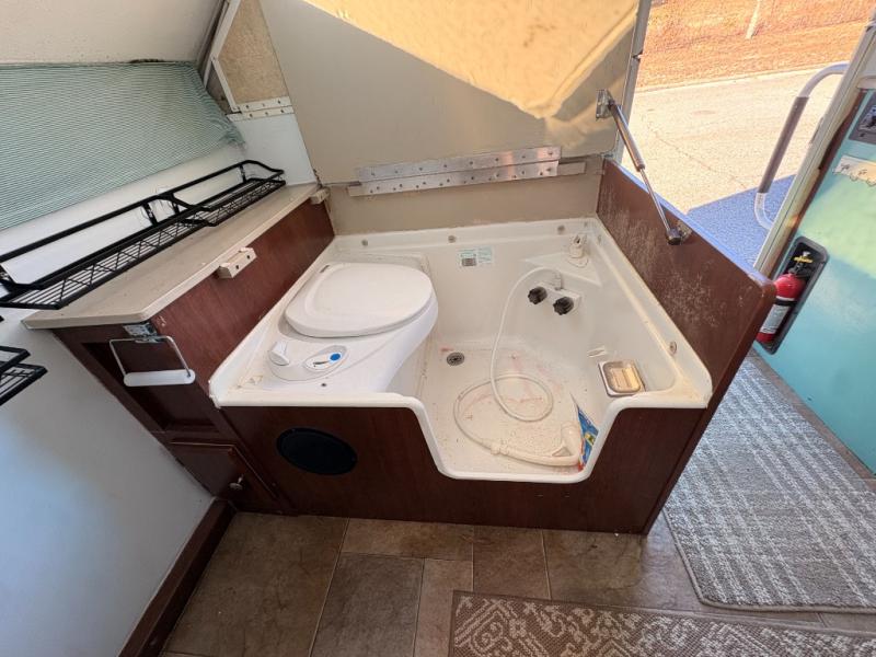 Flagstaff Hard Side Folding Pop-Up Camper, Rear "U" Dinette, Dbl. Kitchen Sink, 3-Burner Range, XL Refrigerator, Sliding Storage, Shower, Porta Potty Cassette, Micro. Cabinet, Overhead Cabinets, RVQUE Gas Grill & Much More.