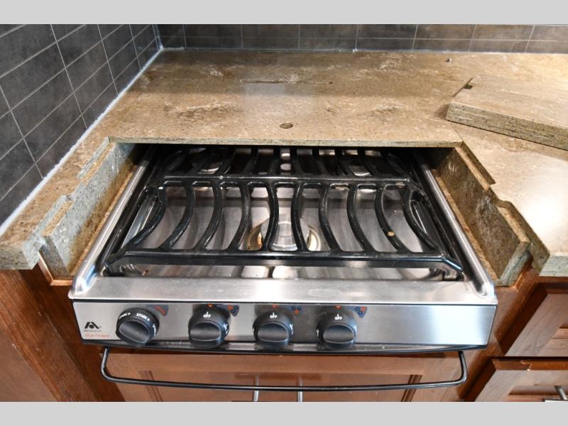 Kitchen: Convection microwave, 3-burner cooktop, stainless steel sink, solid-surface counters, ample cabinetry.