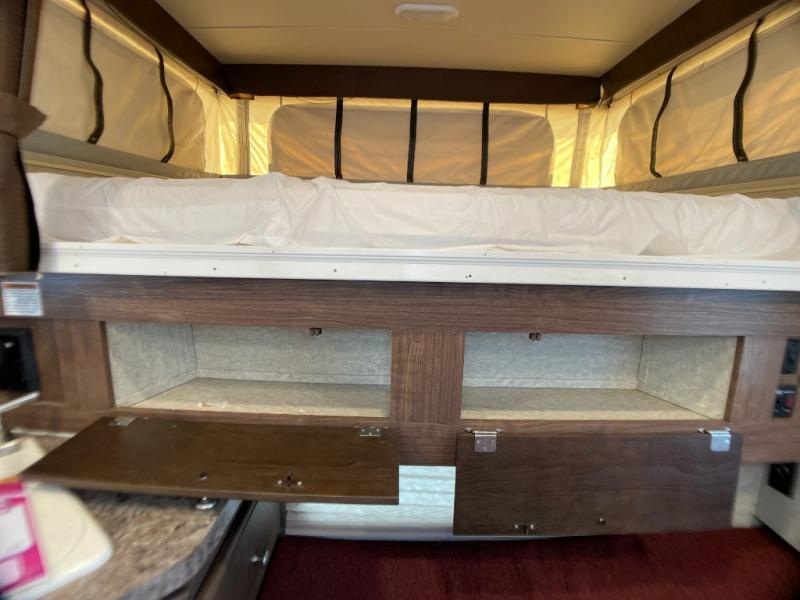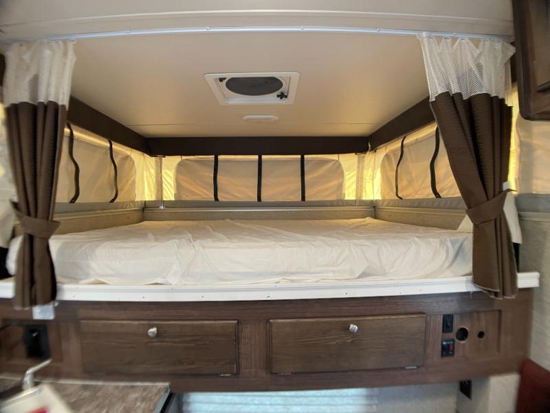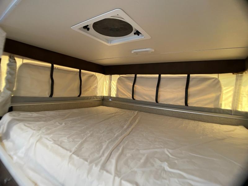 The Soft Side Backpack edition is equipped with a one piece 55” door, interior LED lighting, Serta mattress, 3 way refrigerator and the new electric roof lift system and optional key fob.