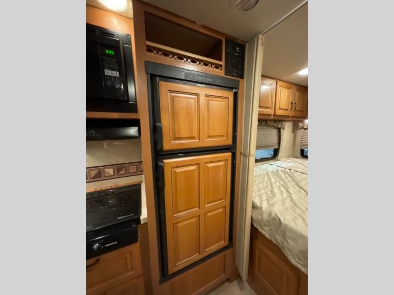Above the cab you will find a bunk mat, or you can choose an optional entertainment center. In the corner of the motor home you can also choose an optional deluxe TV.