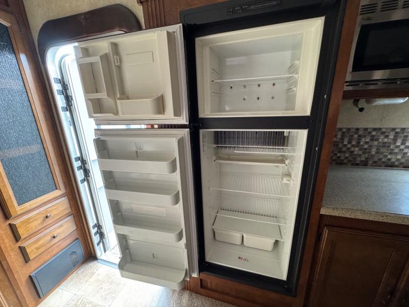 As you enter the 366BH, to the left is a slide with a refrigerator, lots of counter space, three burner range, and microwave. There is a kitchen island with a double kitchen sink. The opposite side of the fifth wheel has a slide with a dinette and hide-a-bed sofa. Next to the dinette is a wardrobe which provides extra storage. To the right of the entrance there is a pantry and an entertainment center.