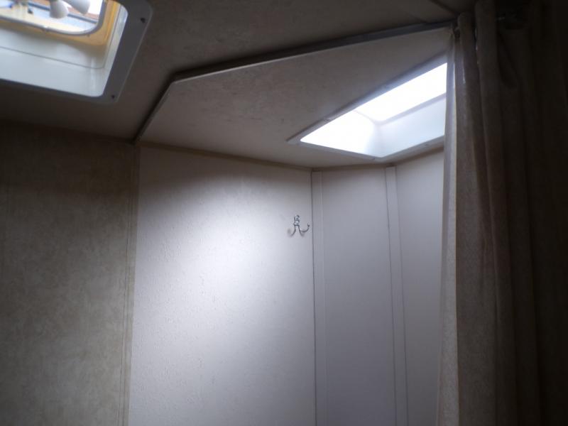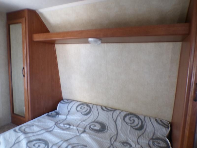 Proceeding toward the front, you will find the bedroom with a comfortable queen bed and two wardrobes, one on either side of the bed.