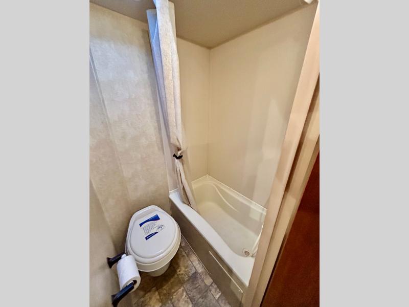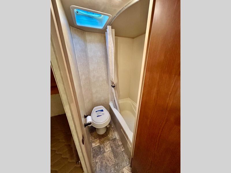 There is also a rear bath with a toilet, shower, and sink.