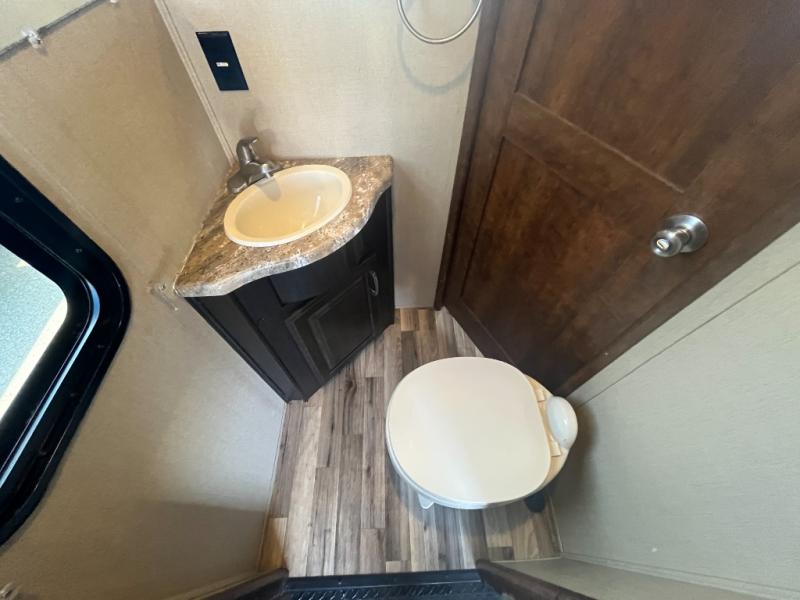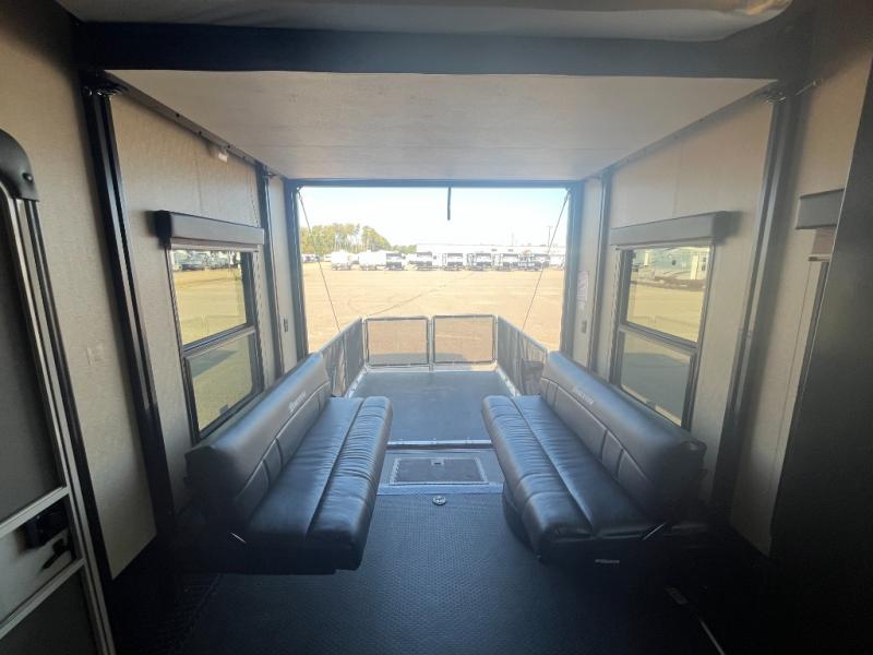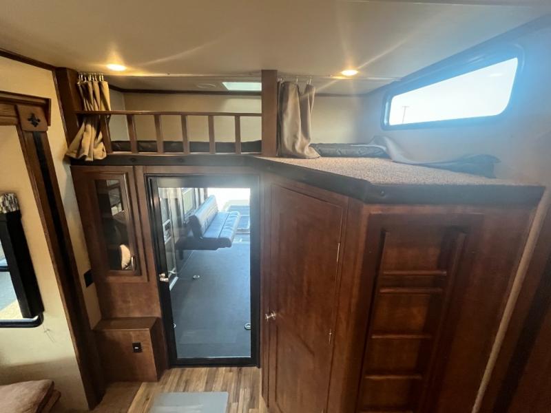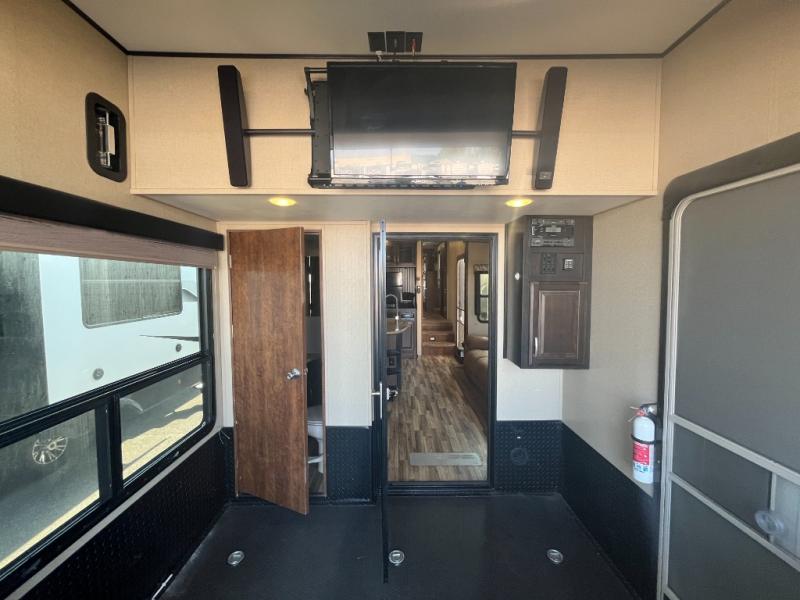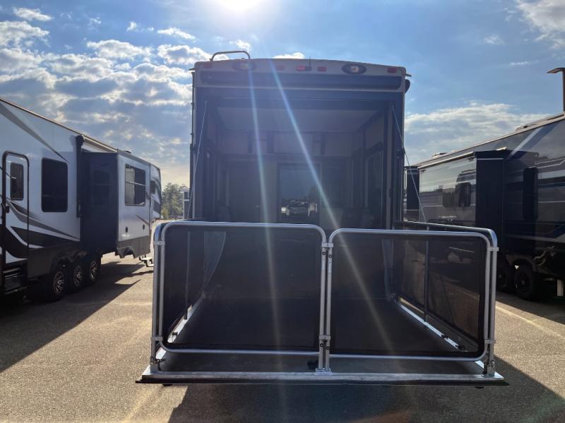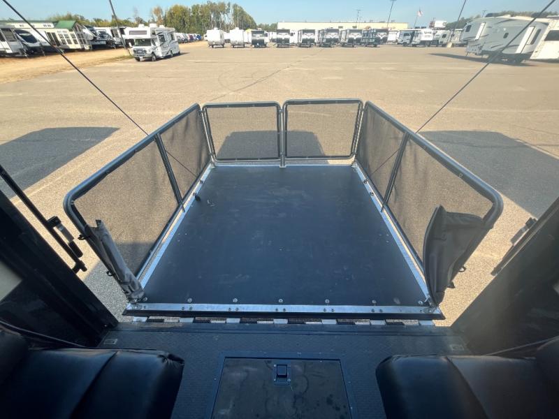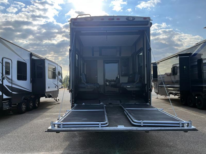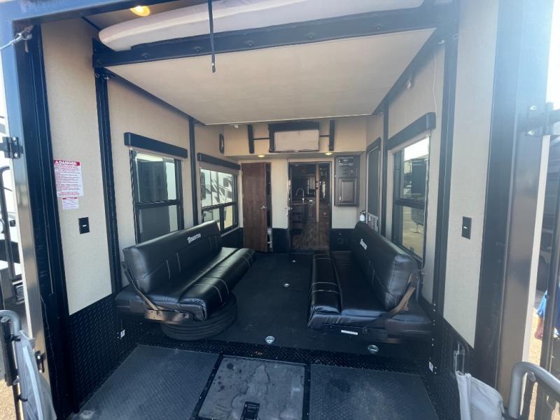 Step inside using the rear ramp door and see how easy it will be to transport your outdoor toys and gear to and from your favorite locations. There is an LED TV on the interior garage wall. The side man door lets you get in and out of the garage when the ramp door is closed. There is a 30 x 96 loft bed above the cargo space that the kids will surely love. There is also a radio and a half bath featuring dual entry doors.