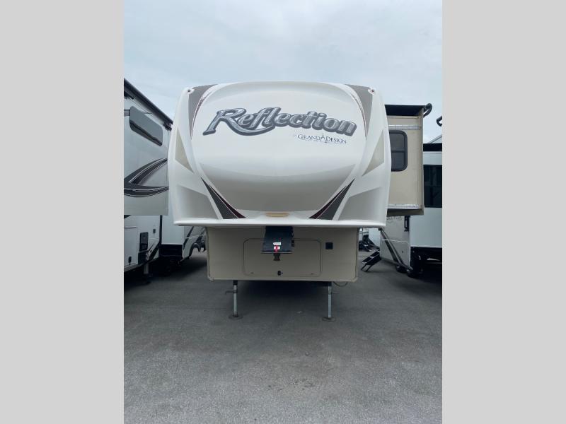 Step inside this Reflection fifth wheel by Grand Design and be pleasantly surprised by what you find inside. You will enjoy all the comforts of home in a convenient rear living layout.