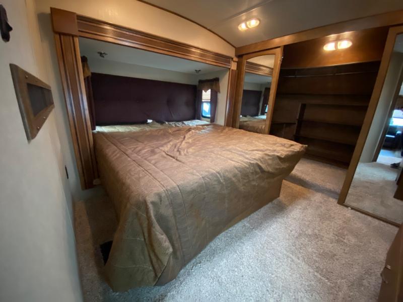 The front bedroom features a queen bed slide, dresser, wardrobe with sliding doors including a shirt closet and washer/dryer prep, and much more!