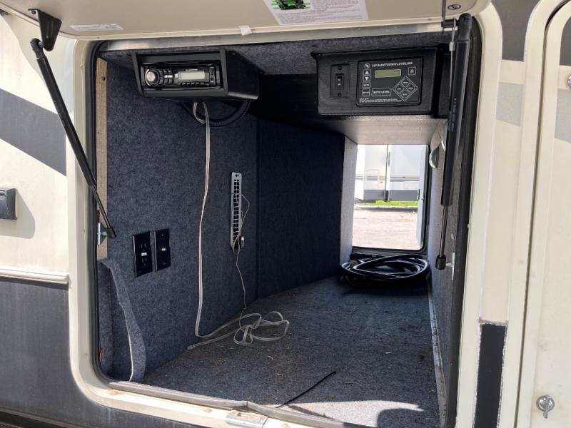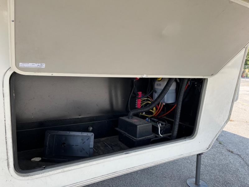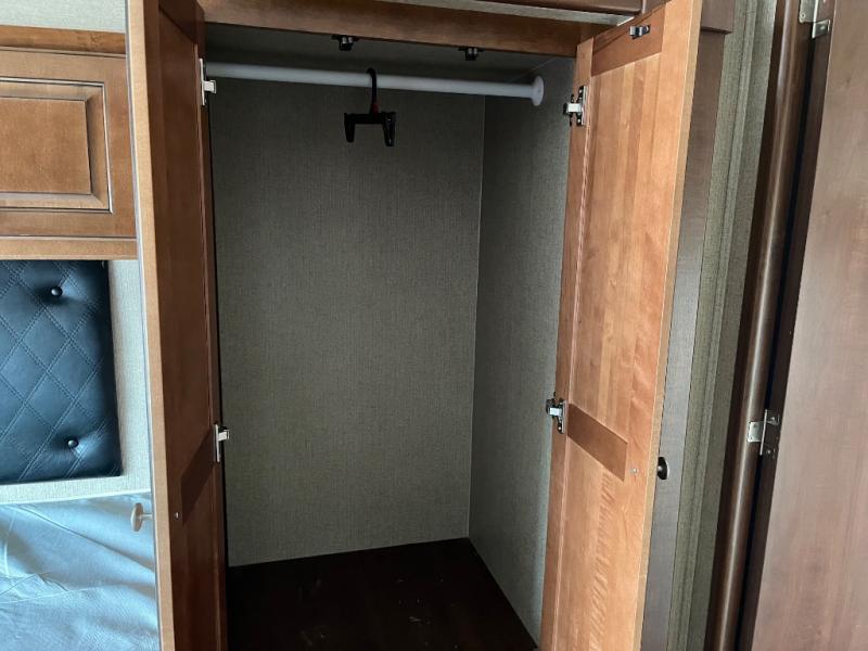 Continue passed the bath and take two steps up to a front bedroom with king bed slide including storage. There is a wardrobe slide opposite the bed, and a closet with washer/dryer prep for added convenience, and so much more!