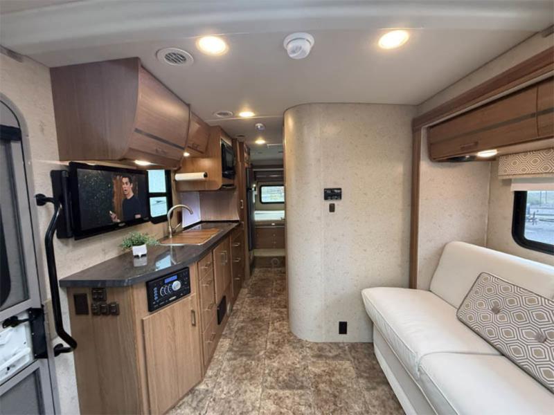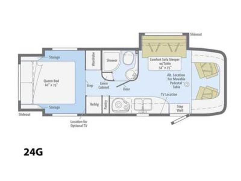 Itasca Navion IQ Class C Coach w/Rear Queen Bed Slideout w/Storage Both Sides of Bed, Step Down to Living Area w/Wardrobe, Bath w/Corner Shower, Toilet & Round Sink, Slideout Comfort Sofa/Sleeper 54" x 75", 26" LCD TV, Refrigerator, Pantry, 2 Burner Cooktop, Dbl. Kitchen Sink w/Overhead Cabinets Throughout and More. Available Options May Include: Optional Bedroom TV, UltraLeather, L-Shaped Sectional Dinette w/Table IPO Comfort Sofa Sleeper.
