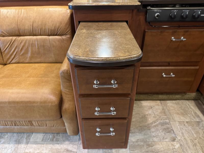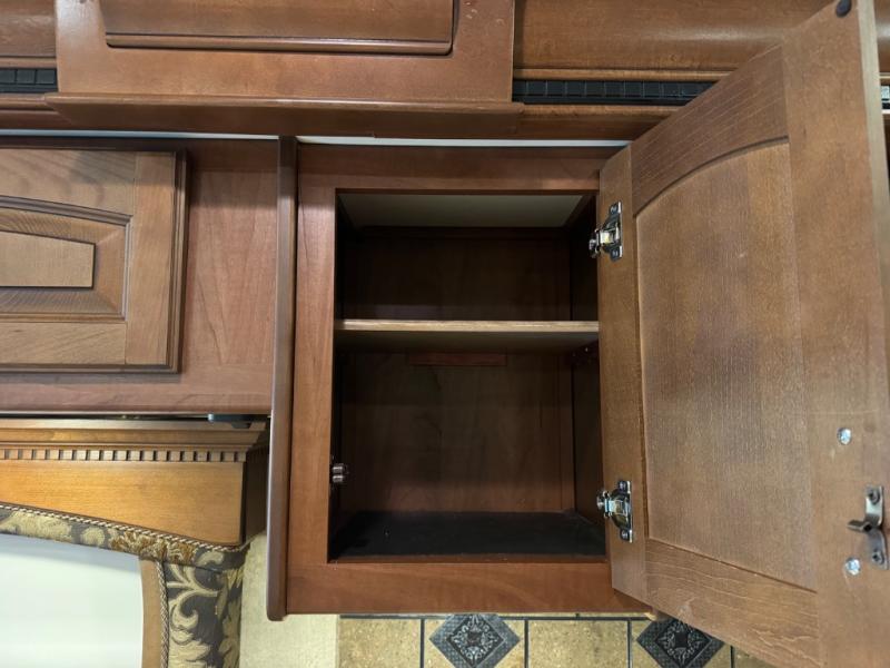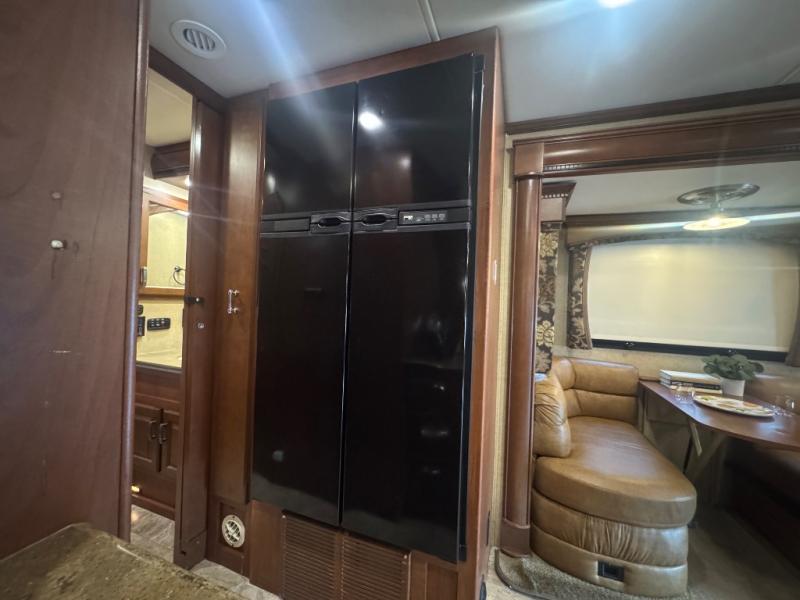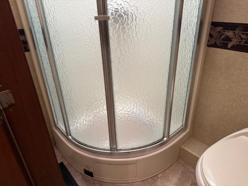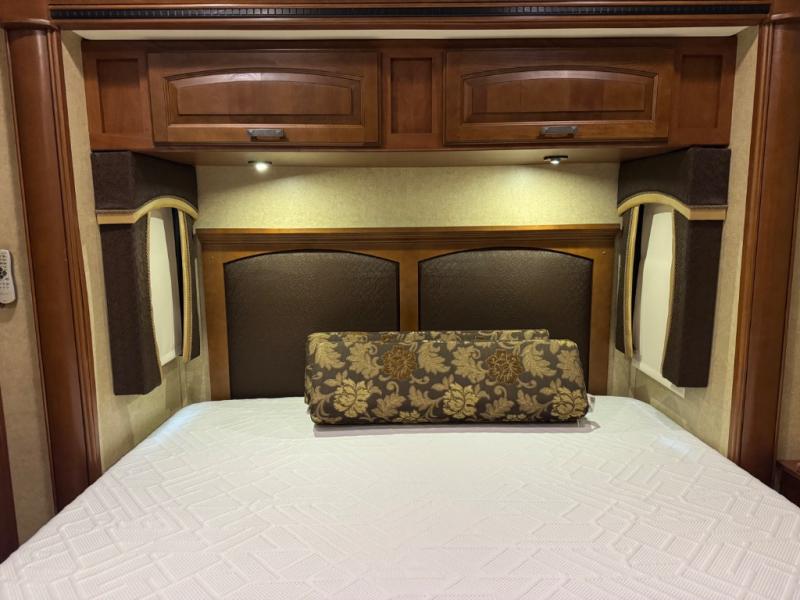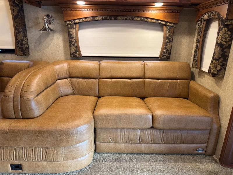 The Seneca 37TS motor home offers triple slides, and much room in the main living area. As you enter the motor home, to the left is a slide with a sofa, microwave, hide-a-bed and double kitchen sink. The opposite side offers a dinette ensemble slide, pantry, refrigerator, and second pantry. In the front you will find a front cab-over queen bed, storage, and a LCD TV/DVD. The bathroom has a toilet, and shower on one side of the motor home, and a sink and medicine cabinet on the other side of the motor home. The rear bedroom offers a king bed slide, and a wardrobe. There are plenty of overhead cabinets throughout the inside of the motor home as well as exterior storage. You can even choose a few options such as a front entertainment center with a 32" TV, a booth dinette, and a washer and dryer.