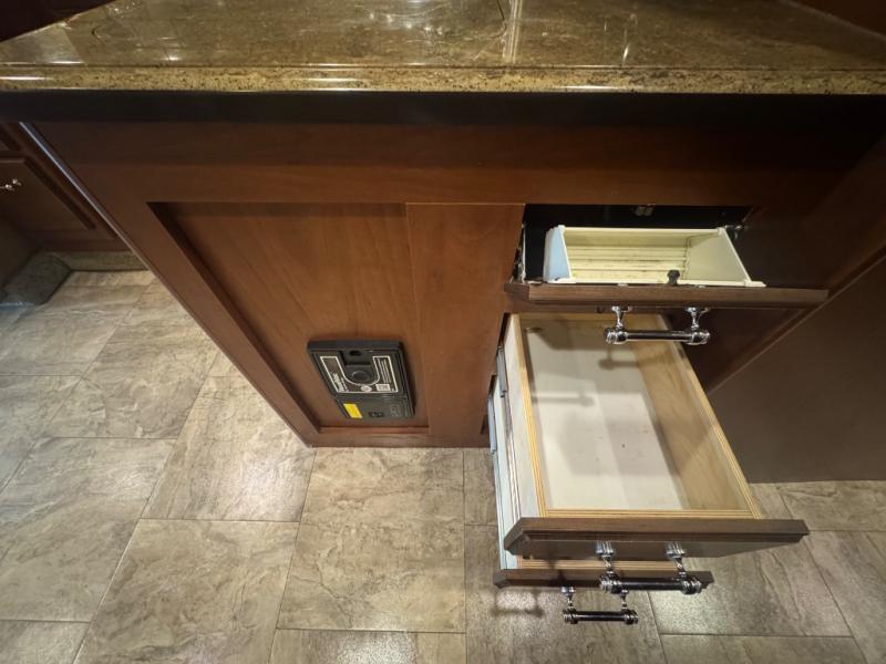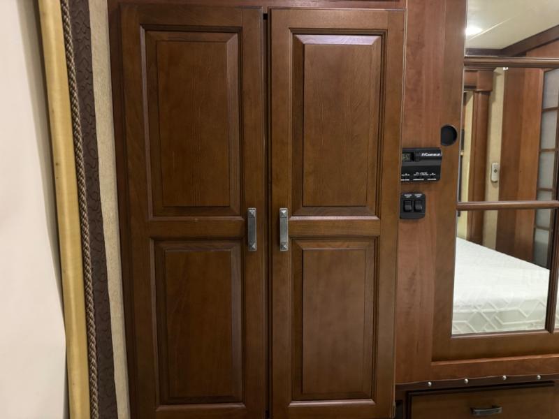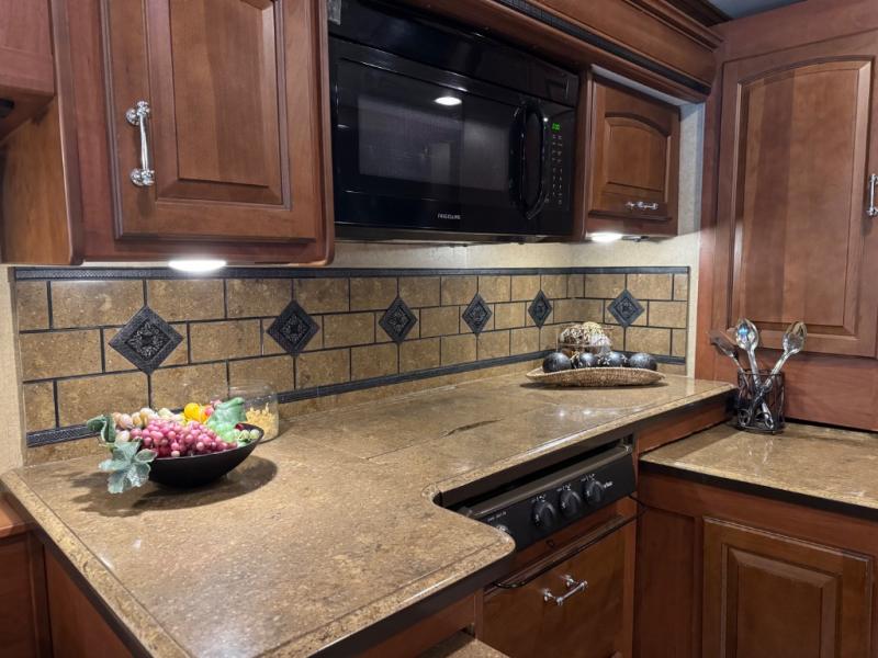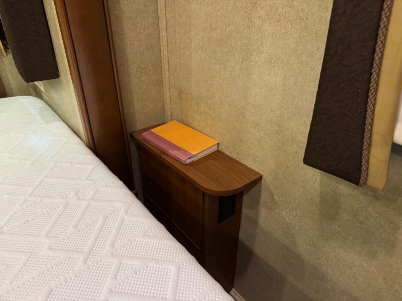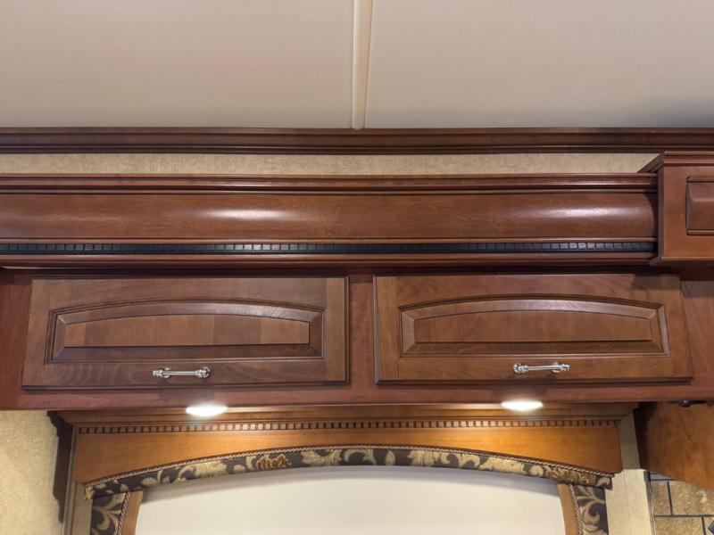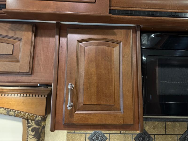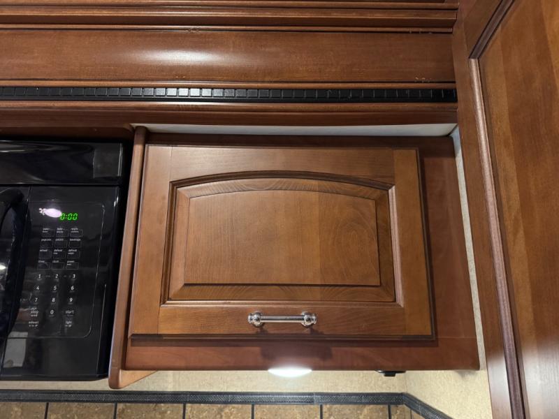 The Seneca 37TS motor home offers triple slides, and much room in the main living area. As you enter the motor home, to the left is a slide with a sofa, microwave, hide-a-bed and double kitchen sink. The opposite side offers a dinette ensemble slide, pantry, refrigerator, and second pantry. In the front you will find a front cab-over queen bed, storage, and a LCD TV/DVD. The bathroom has a toilet, and shower on one side of the motor home, and a sink and medicine cabinet on the other side of the motor home. The rear bedroom offers a king bed slide, and a wardrobe. There are plenty of overhead cabinets throughout the inside of the motor home as well as exterior storage. You can even choose a few options such as a front entertainment center with a 32" TV, a booth dinette, and a washer and dryer.