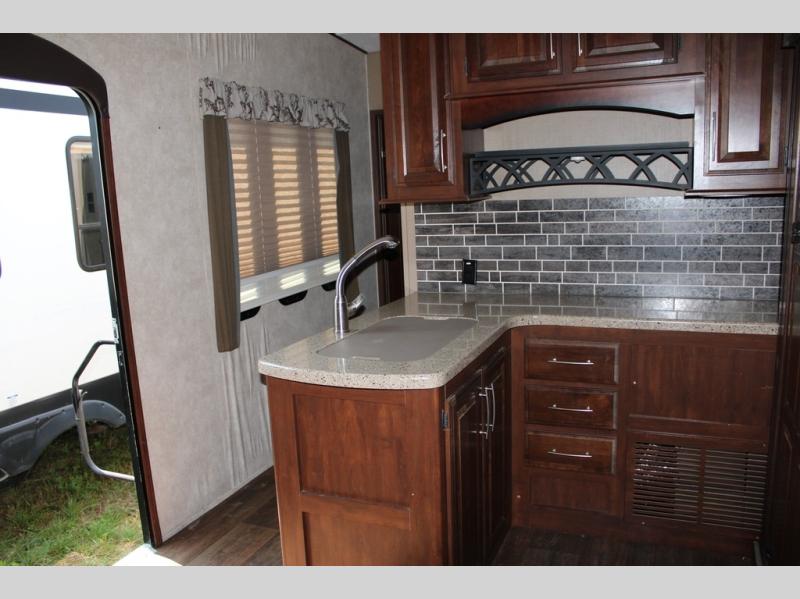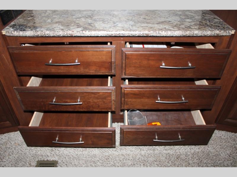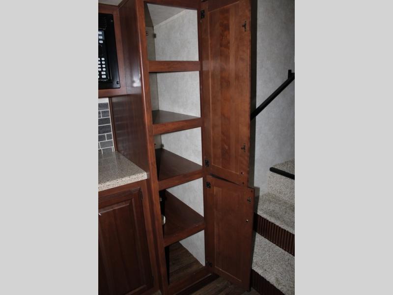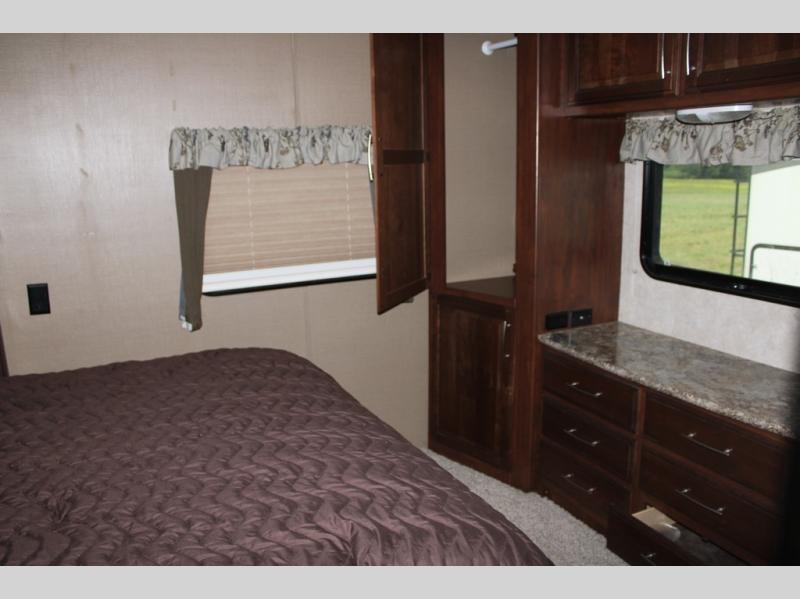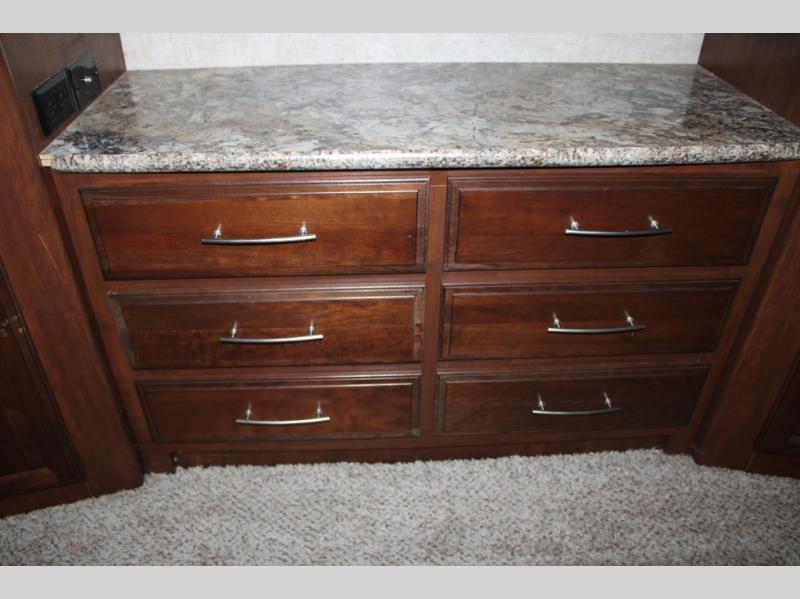 What I liked most: Front living area has a open rail system which makes the unit feel more spacious. Nice pantry. Master bedroom with slide allows for a lot of space to get around with really nice wardrobe and dresser. Extra tall headroom in shower area and the vanity.