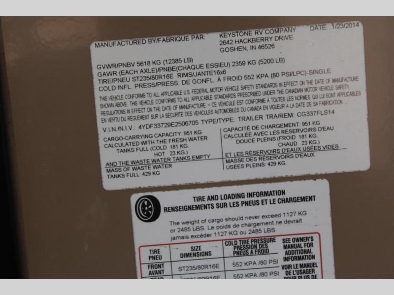 Used 2014 Keystone RV Cougar 337FLS Fifth Wheel