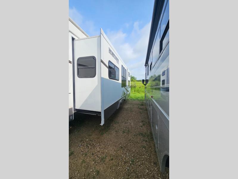 Montana Mountaineer Edition Bunkhouse FW w/Loft & 1-1/2 Baths, Rear Bunk Bed Slideout, 1/2 Bath w/Private Entry, Wardrobe/Ent. Center w/19" LCD TV, Loft Above, Ext. Camp Kitchen, Booth Dinette & Air Mattress HAB Slide, 32" LCD TV/Ent. Center in Living Area, Dbl. Kitchen Sink, Slideout 3 Burner Range & Refrig., Step Up to Bed & Side Aisle Bath w/Garden Tub, Sink, Toilet, Linen Cabinet & Dual Entry, Queen Bed Slide, Wardrobe w/Sliding Doors, Wash/Dryer Prep/Storage, Dresser and Much More!