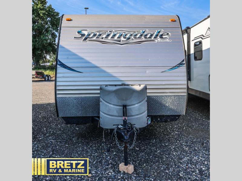Take your camping up a notch with this Springdale travel trailer 202QBWE. This unit features a front bedroom and many conveniences that make camping more enjoyable.