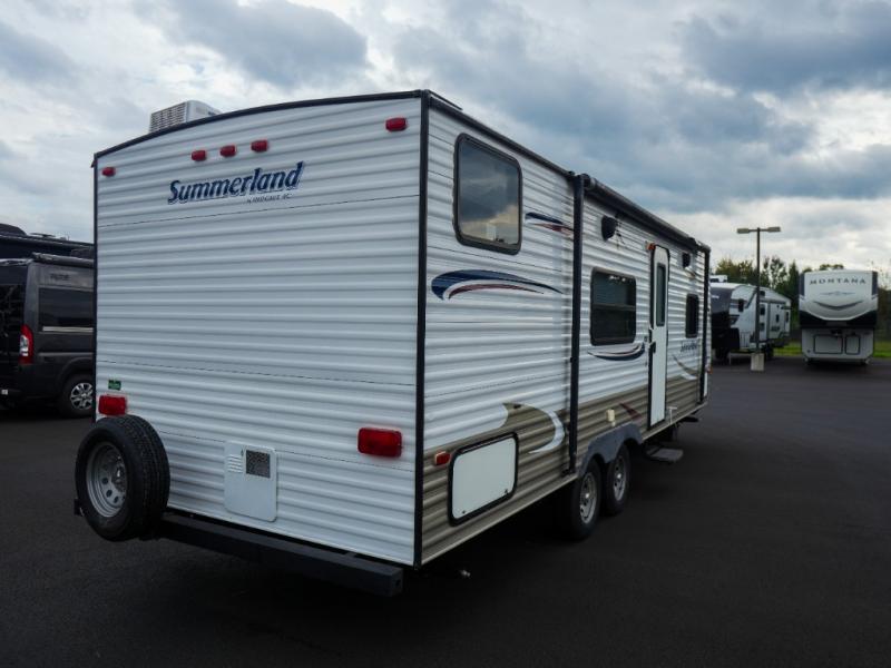 Step inside this Summerland travel trailer 2600TB and see just how convenient your camping can be. There is sleeping space for eight, and all the amenities needed to make traveling fun.