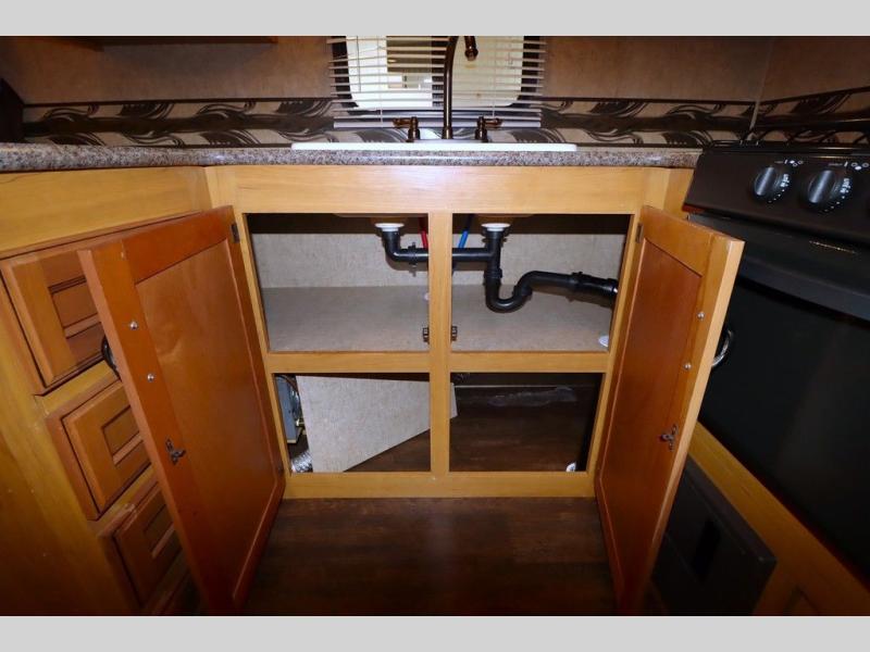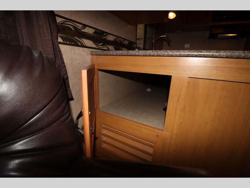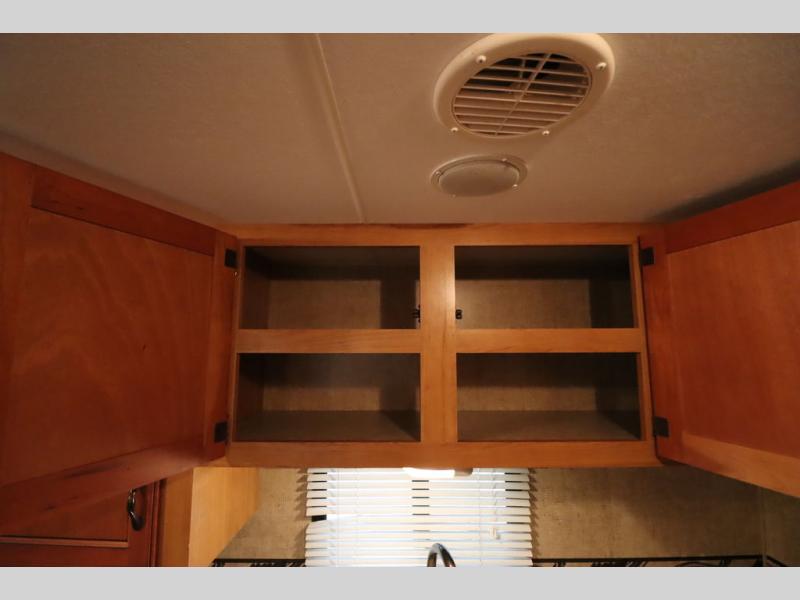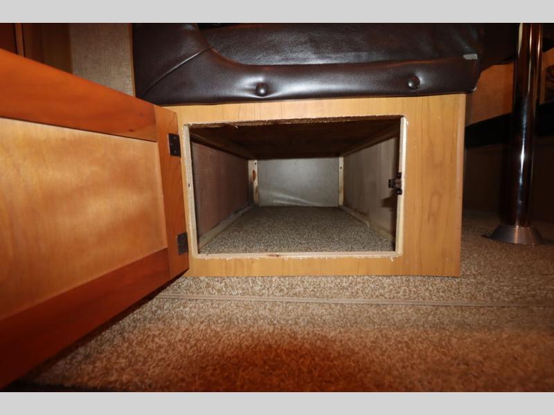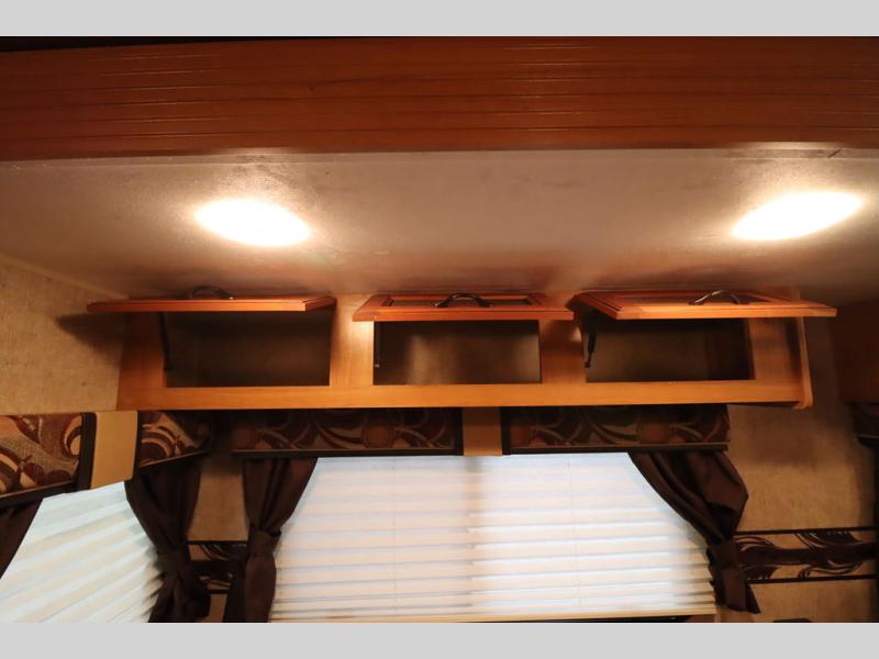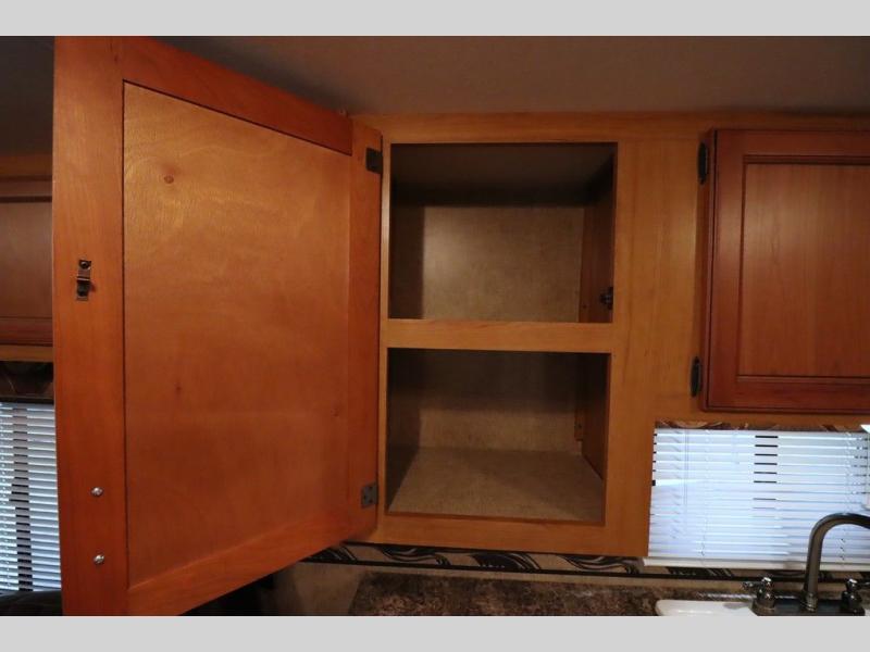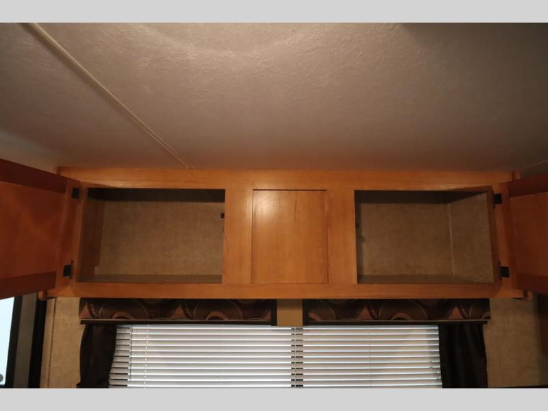 You will have plenty of storage space with all of the overhead cabinets and the front exterior trunk door.