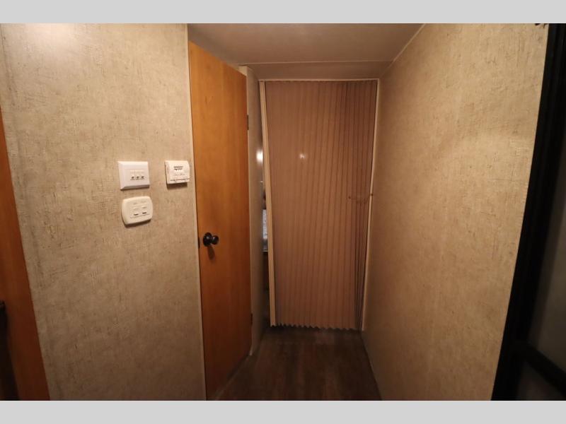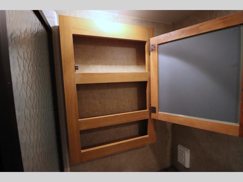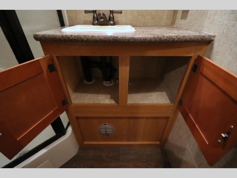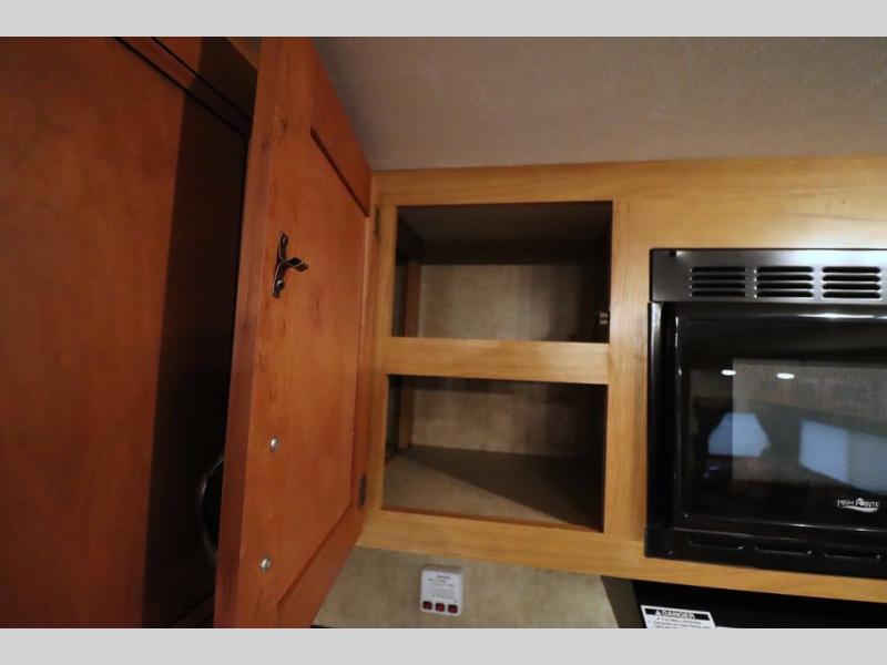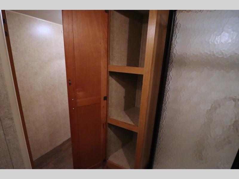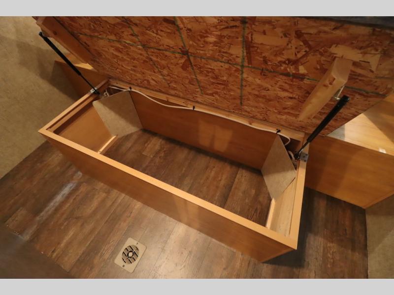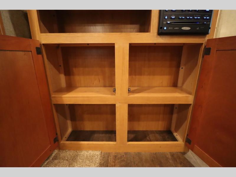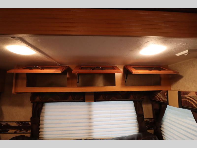 You will have plenty of storage space with all of the overhead cabinets and the front exterior trunk door.