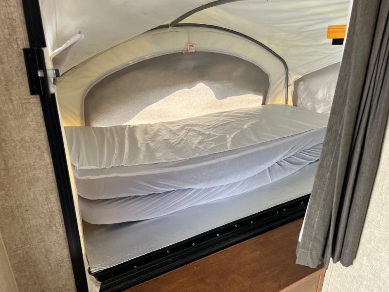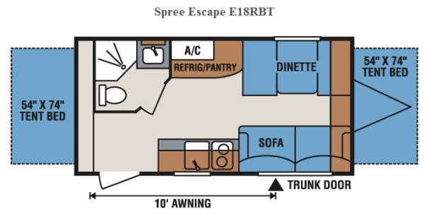 The Spree Escape E18RBT expandable by KZ offers a front and rear tent bed.