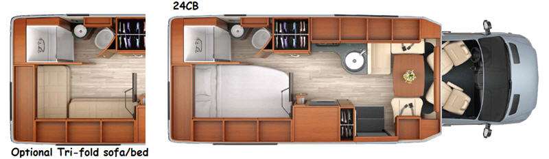 You can also choose in place of the rear corner bed a tri-fold electric sofa for ample daytime seating which converts to sleeping space easily at night.
