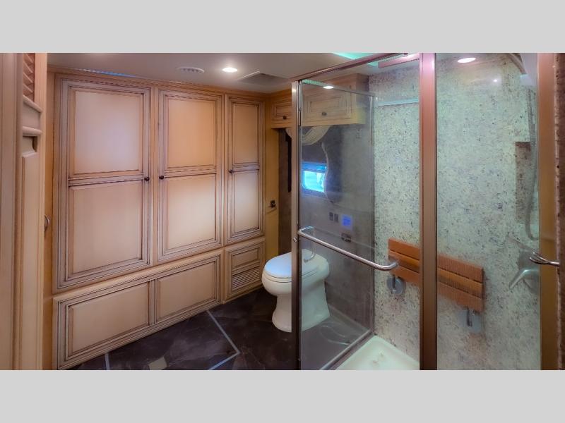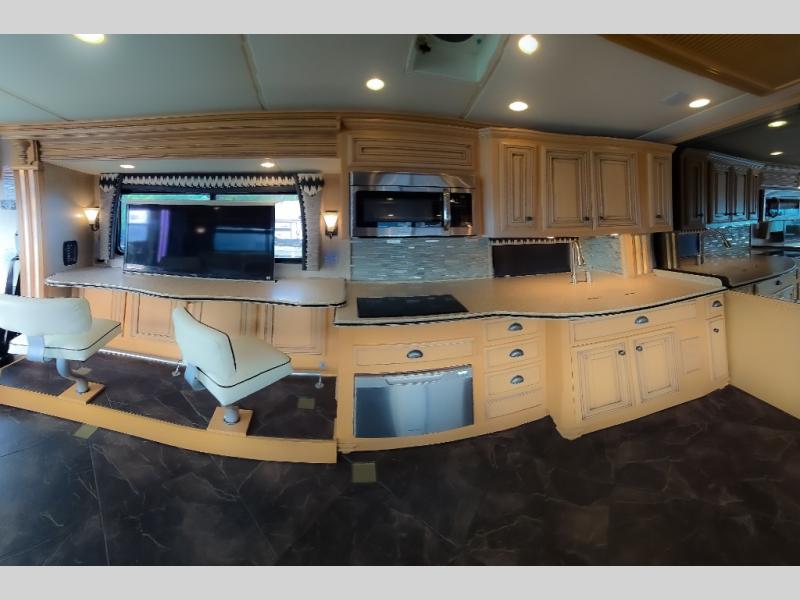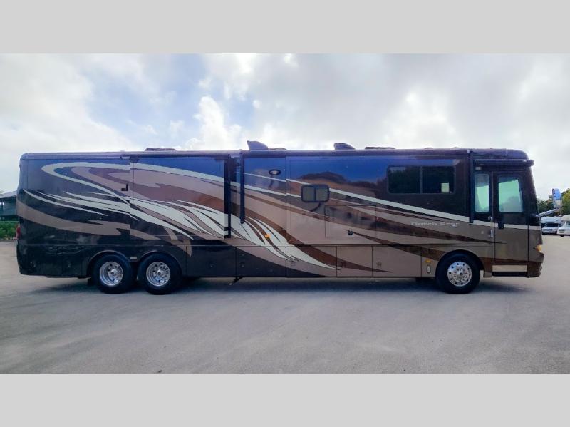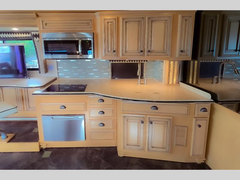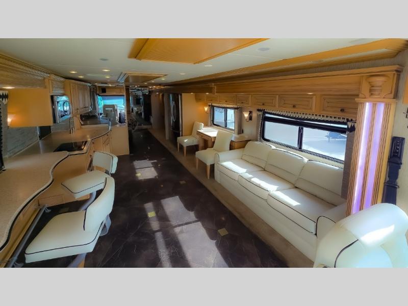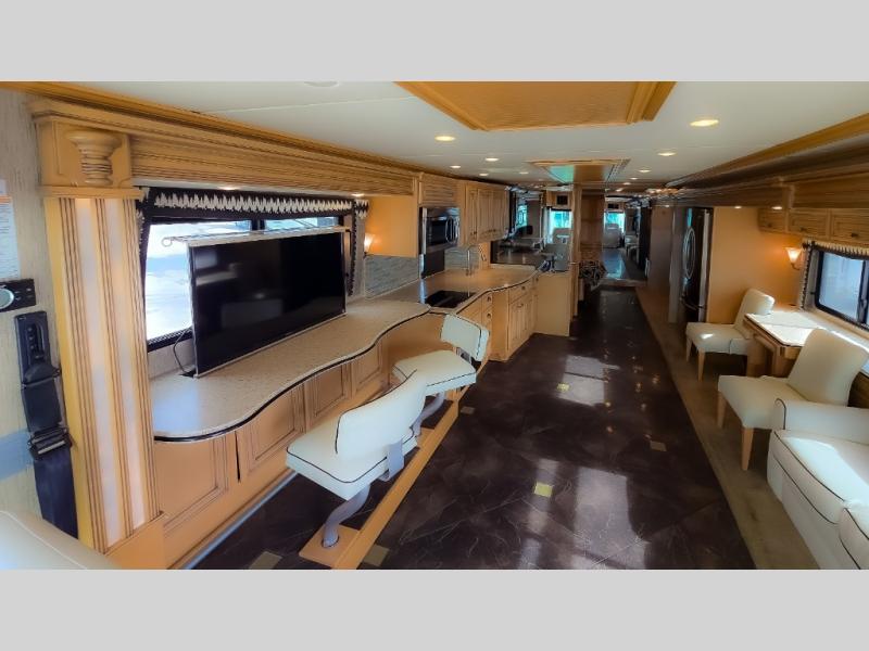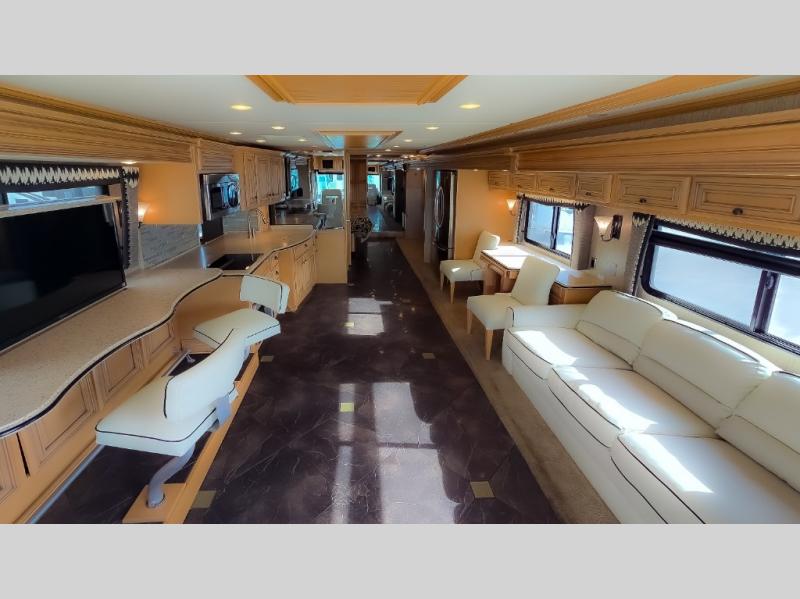 The Dutch Star 4369 motor home by Newmar offers triple slides and a bath and a half.