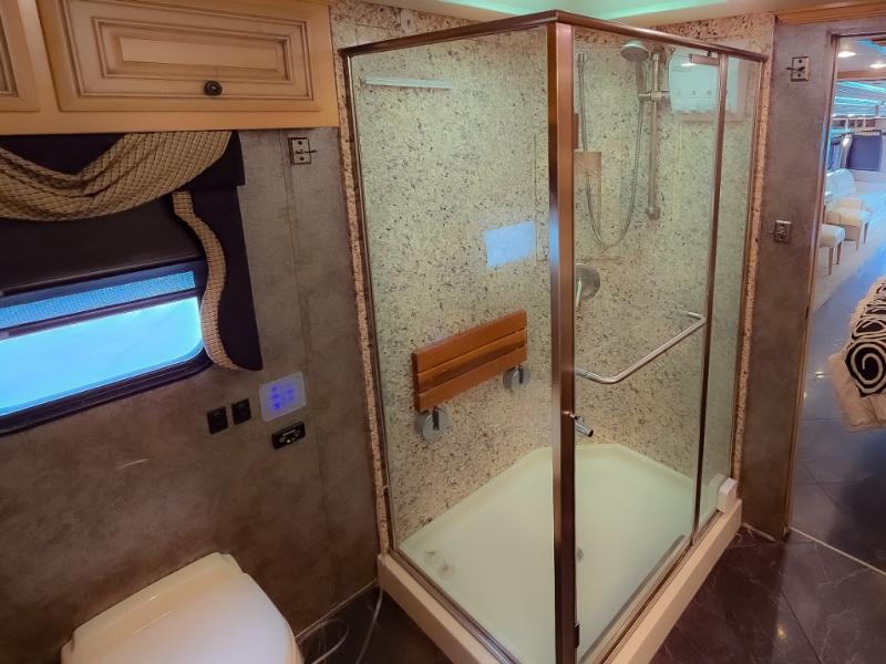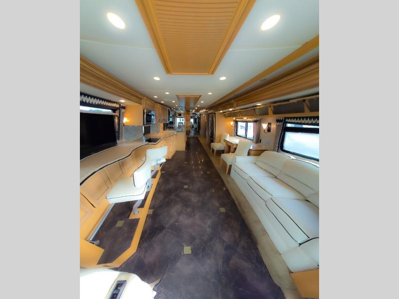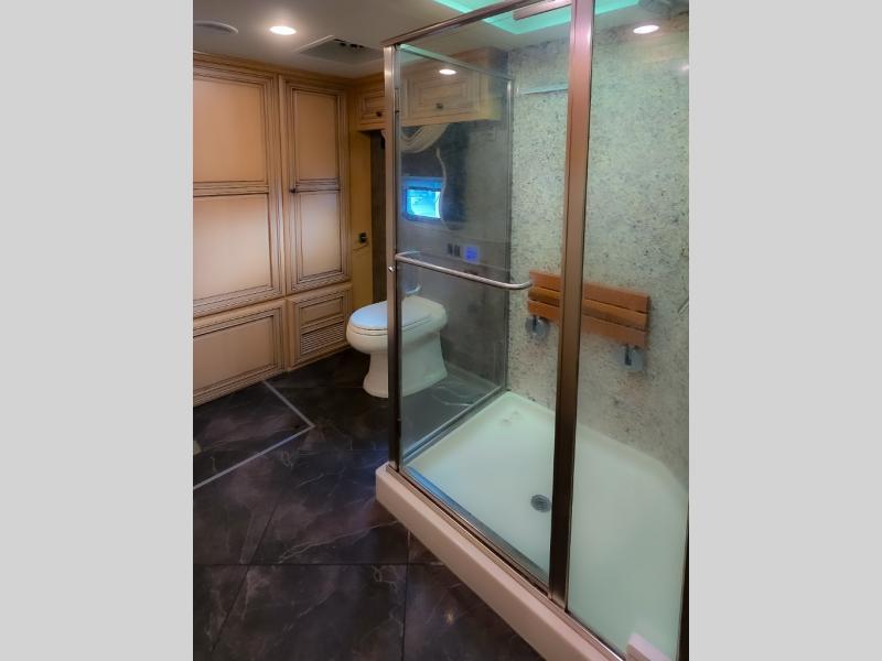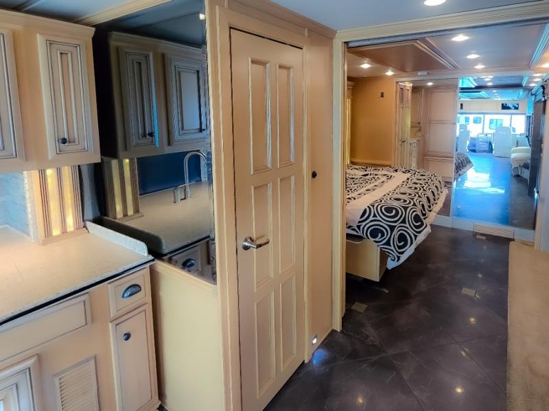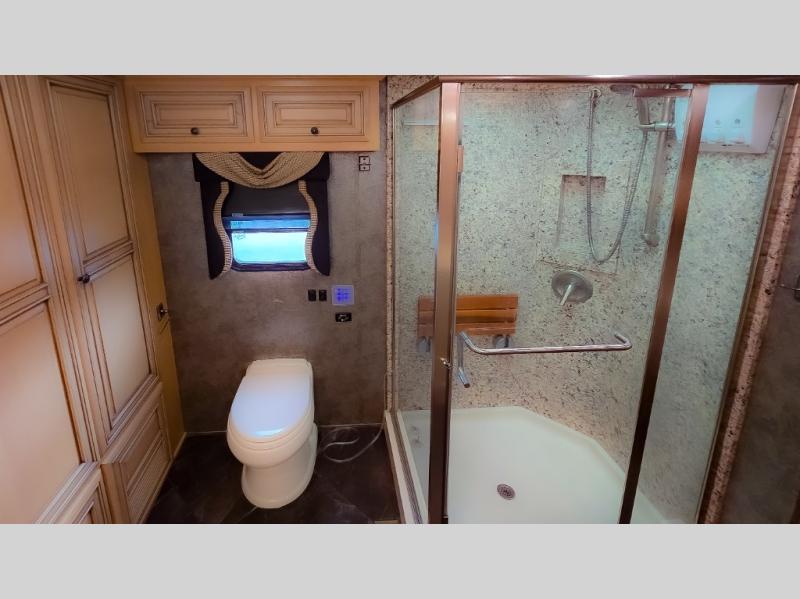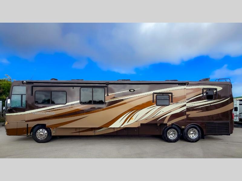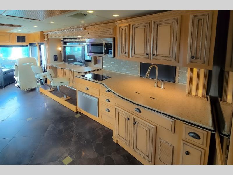 The Dutch Star 4369 motor home by Newmar offers triple slides and a bath and a half.