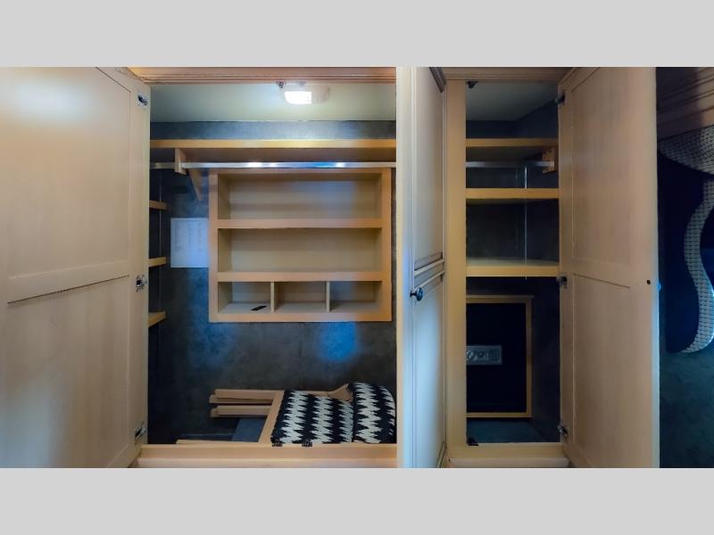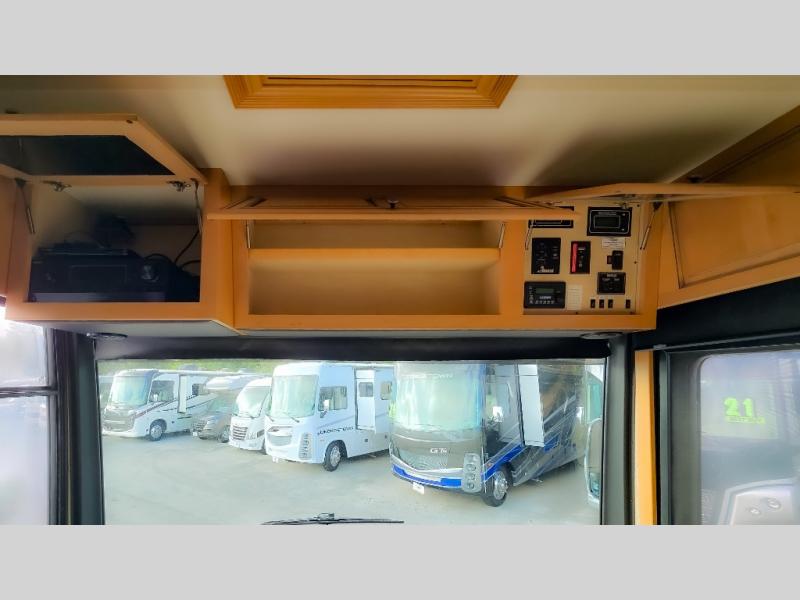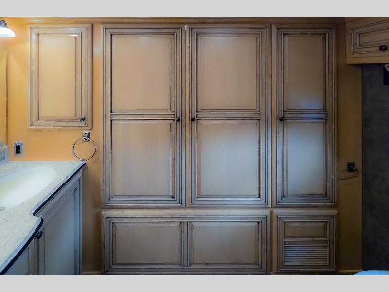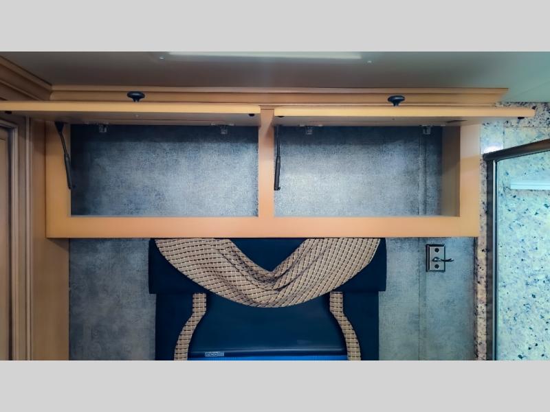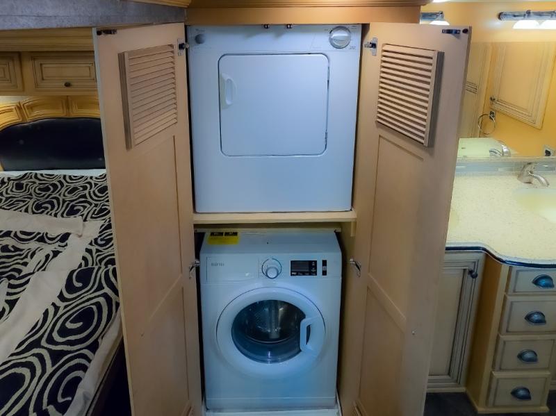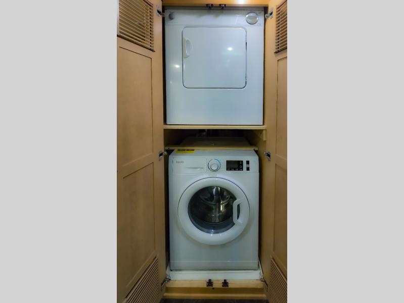 There are plenty of overhead cabinets throughout the motor home as well as an optional washer and dryer.