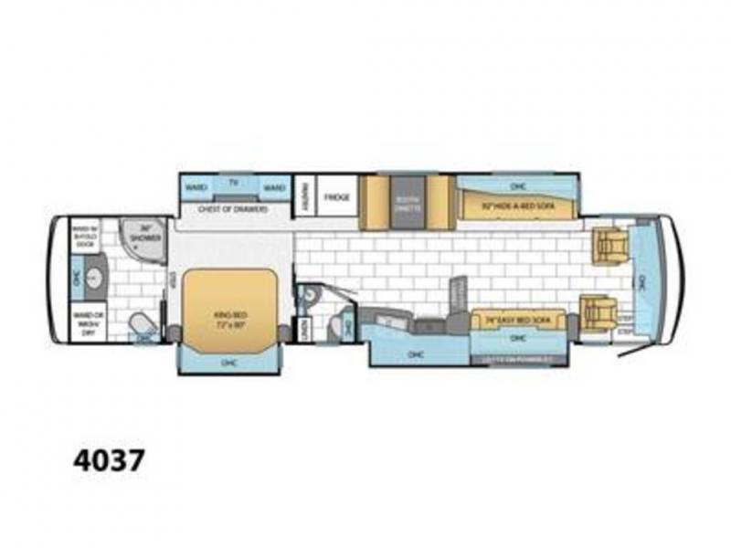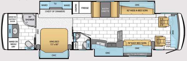 There are plenty of overhead cabinets throughout the motor home. You can even choose an optional washer and dryer.