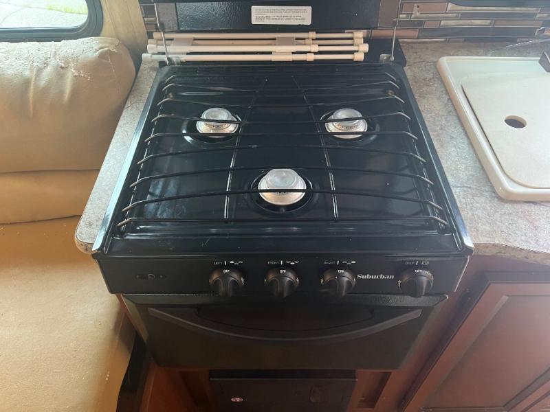 Cook light meals easily with a three burner range provided. There is also a refrigerator with entertainment shelf above, and a double kitchen sink which makes cleanup a cinch.