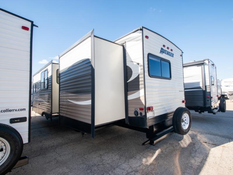 The Avenger 33BHS travel trailer by Prime Time Manufacturing offers triple slides and a rear bunk house.