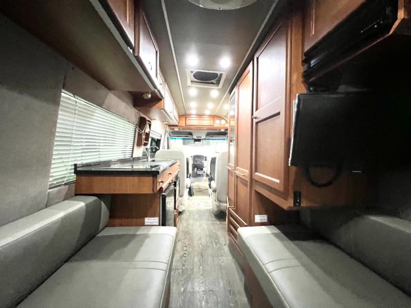 With four captain's chairs around the front dinette you can easily sit and eat at the table or use the table to play a board game on with your guests. Both sides of the front of the motor home can be converted to additional sleeping space.