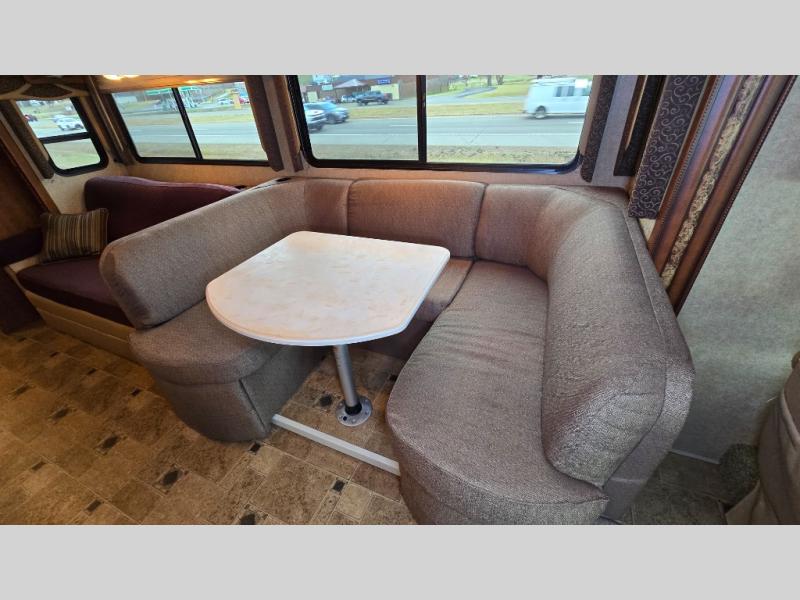 Thor Motor Coach offers the Hurricane 34E class A featuring two slides, a bath and a half and a u-shaped dinette.