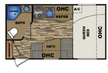In the very front there is a queen size bed for a great nights rest with overhead cabinets, and so much more!