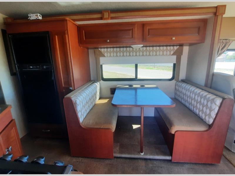 Do you ever feel like packing up and hitting the road for a spontaneous trip? This Winnebago 26HE is just what you need to do that. It has all the kitchen necessities: a booth dinette, a rear bedroom, and a split bath. With a smooth ride, plenty of space to move around, and overall relaxation, why wouldn’t this be your next purchase?