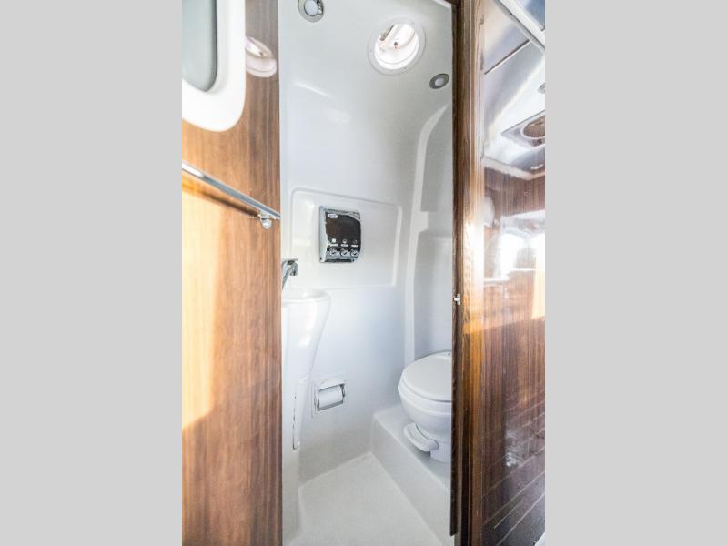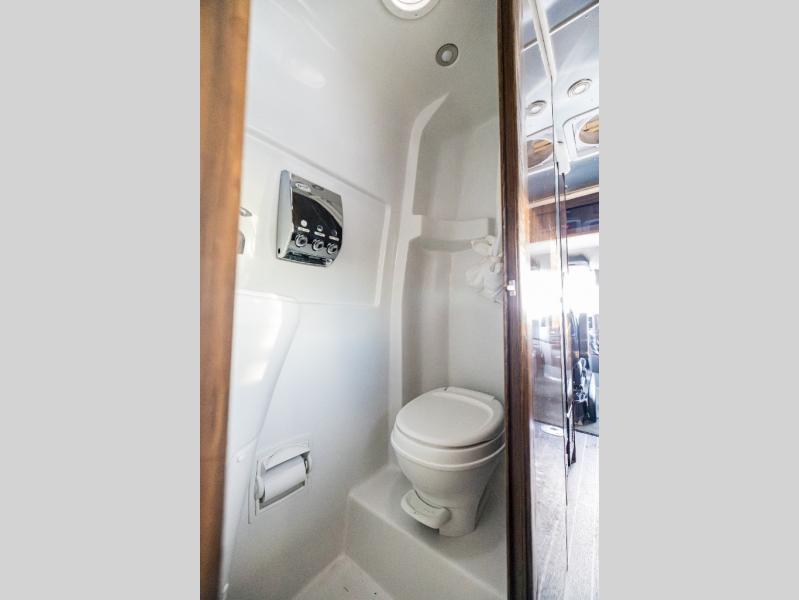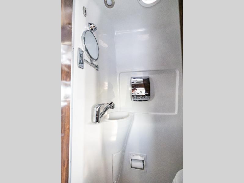 As you move toward the rear notice a convenient wet bath on your right which includes a toilet, small sink and shower.