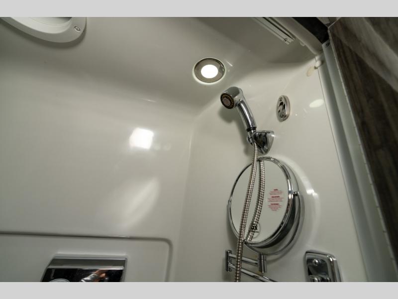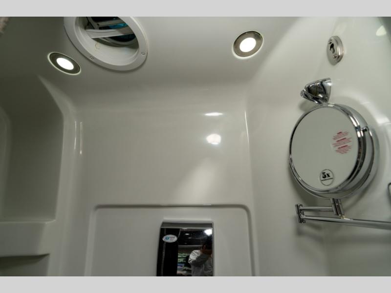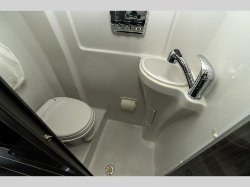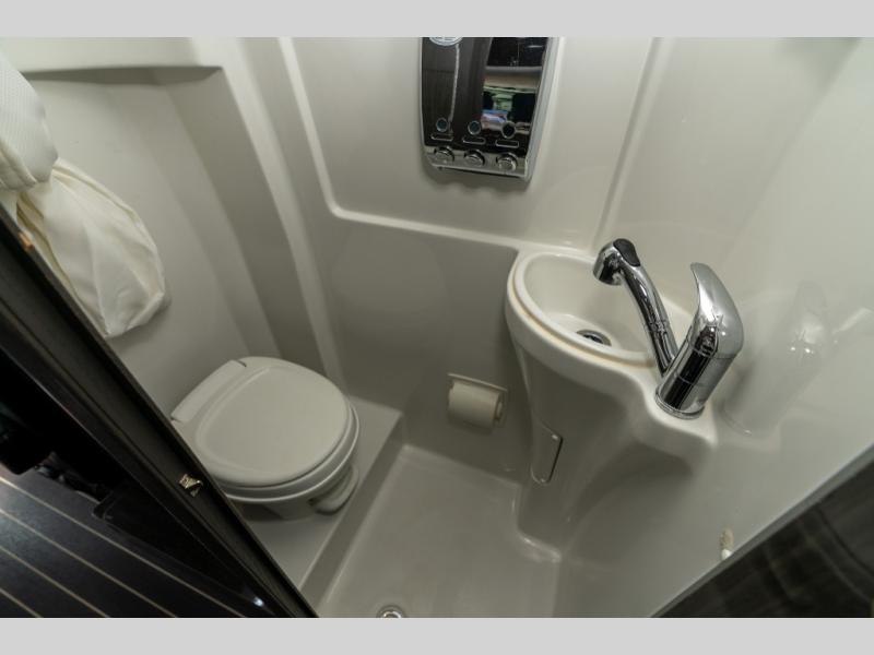 As you move toward the rear notice a convenient wet bath on your left including a toilet, small sink and shower.