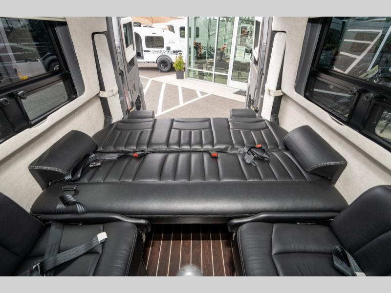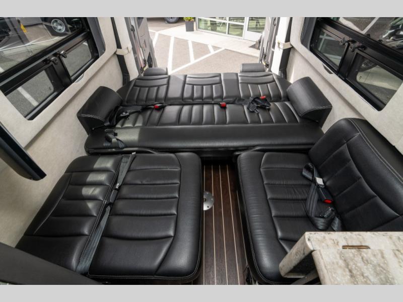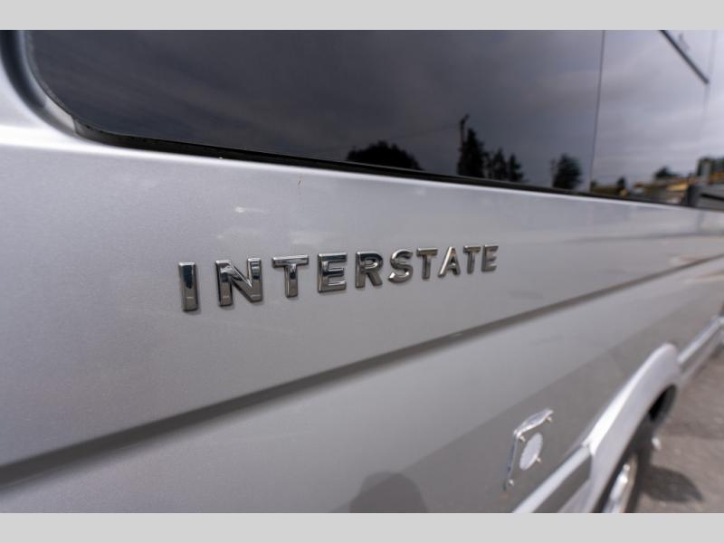 This Interstate Lounge EXT Class B Touring diesel coach offers interior seating for 9 individuals and sleeping accommodations for two.