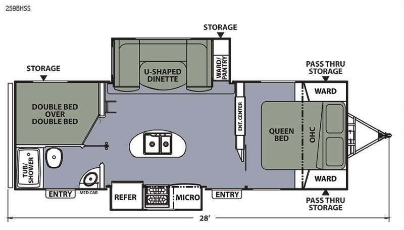What I liked most: Master bedroom has wardrobes on either side of the bed set of an angle which makes the bedroom feel bigger. Enough storage and kitchen and kitchen island for weekend trips. Large entertainment center with lots of extra storage. Booth dinette area has cushions with curves versus going all the way to the corner which makes it easier to sit in the corners nice large dining table. Storage access at the end of the booth is nice.