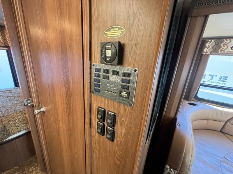 The rear private bedroom features a queen slide out bed with storage above plus nightstands. Opposite the bed find storage cabinets with space for all of your clothes and things, and a place to add an optional 24" TV if you choose, plus so much more!